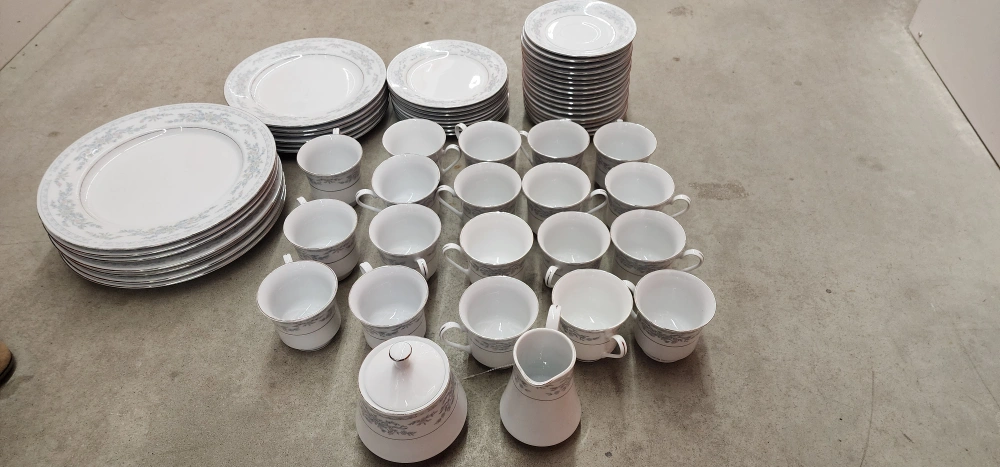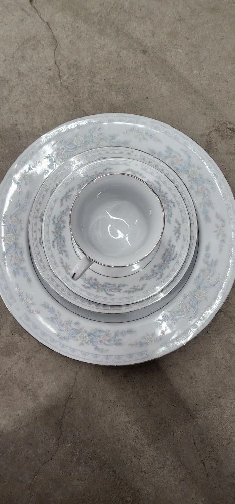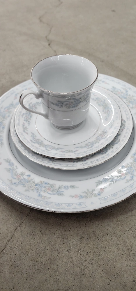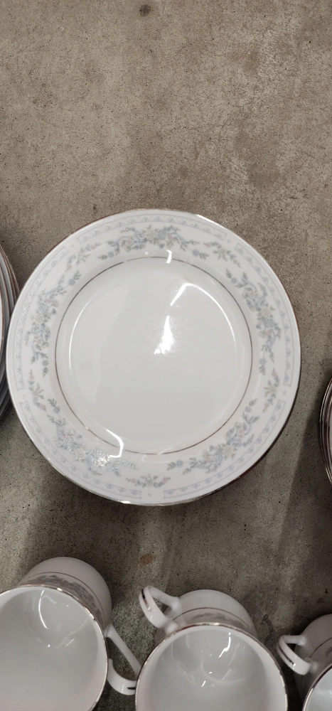 10Selling a beautiful vintage dinnerware set with a delicate floral pattern. Includes plates, saucers, and cups. Perfect for adding a touch of elegance to your dining table! 20 Dinner Plate 60 Salad Plate 8 Bread & Butter (or Dessert) Plate 19Teacup 17 Saucer 1 creamer 1 sugar bowl
