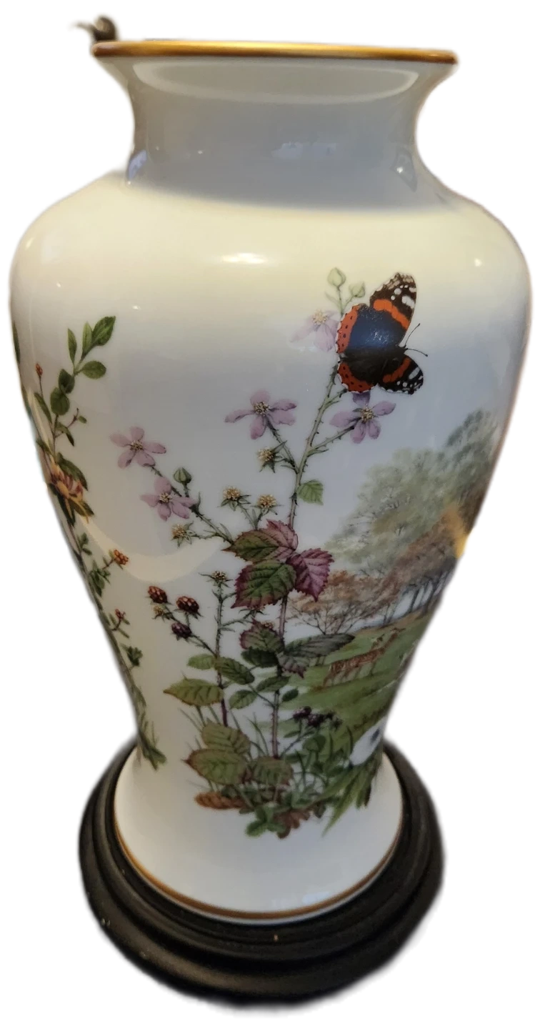 91Selling a lovely vintage vase with a beautiful floral and butterfly design. It's in great condition and would look lovely in any home ! Height on wooden stand 13" without stand 12"