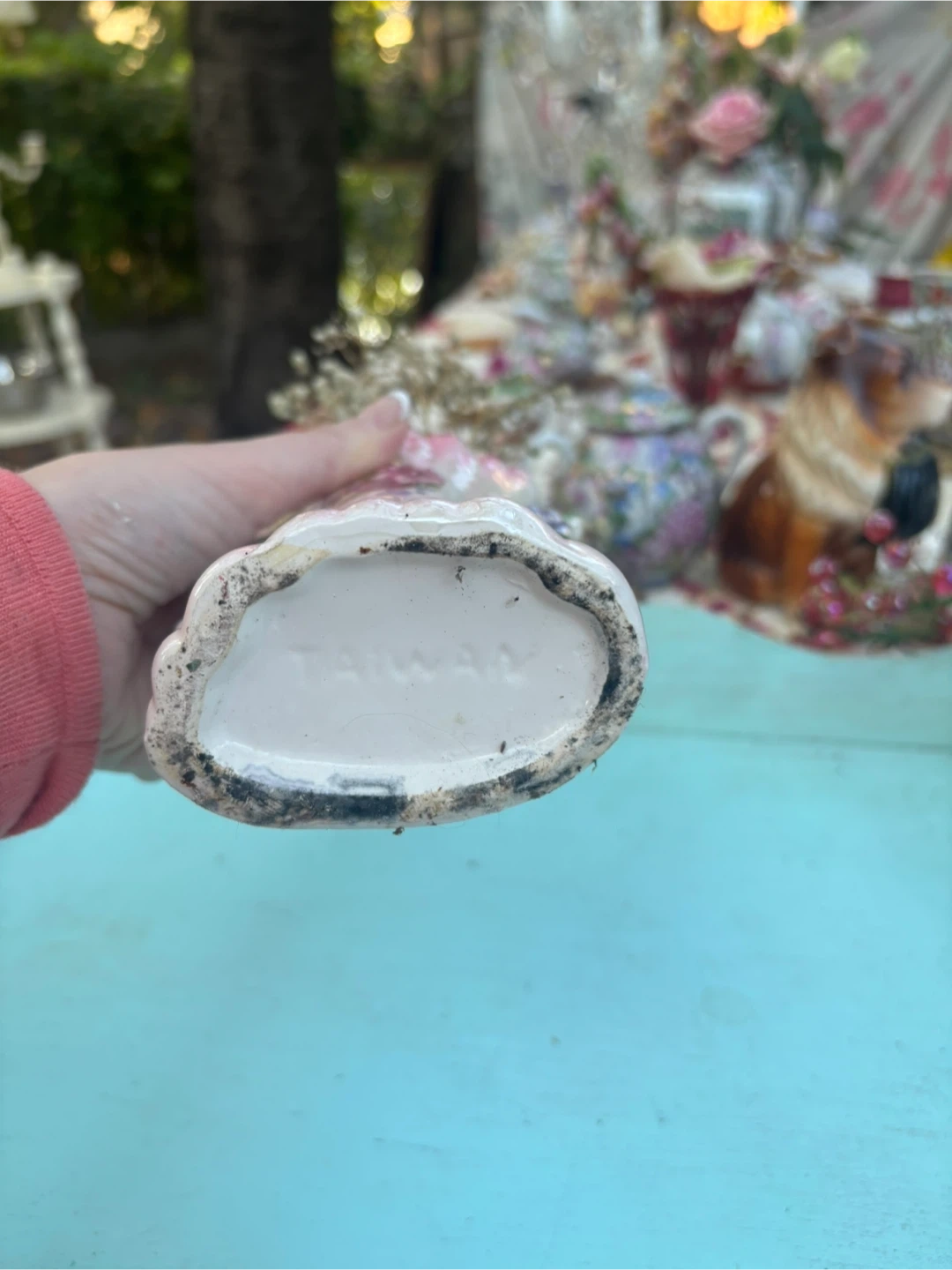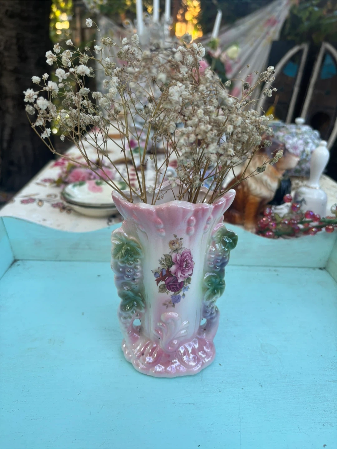 60Selling a cute vintage vase with a floral design! It's pink and green with a lovely rose detail. Perfect for adding a touch of charm to any room
