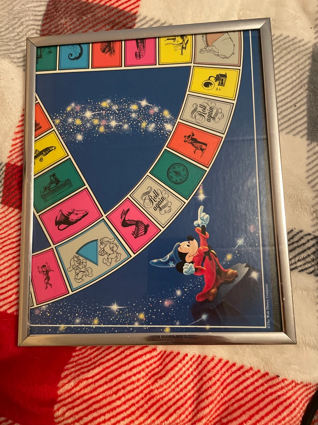 Framed vintage Disney game board. Silver aluminum frame. Made in Canada by Bader. 8x10 inch frame.