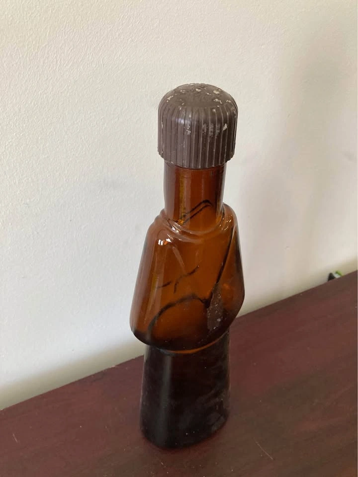 90Add a touch of vintage charm to your bar or home décor with this original Frangelico liqueur bottle, designed in the iconic shape of a monk in a robe. Made of brown glass with its original plastic screw cap embossed “Frangelico Canale – Italy”, this bottle is a beautiful example of mid-century Italian design and branding. Details: • Brand: Frangelico • Material: Amber glass with brown plastic cap • Made in: Italy (marked “Canale – ITALY” on cap) • Condition: Good vintage condition; clean inside, minor scuffs on cap and surface consistent with age. • Use: Perfect as a decorative piece, vase, upcycled lamp base, or bar display item. A great find for vintage bottle collectors, barware enthusiasts, or anyone who loves unique Italian glassware.
