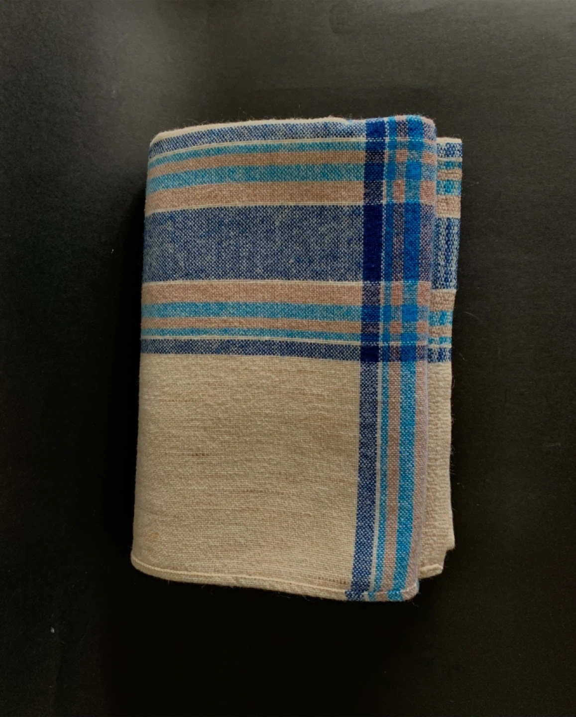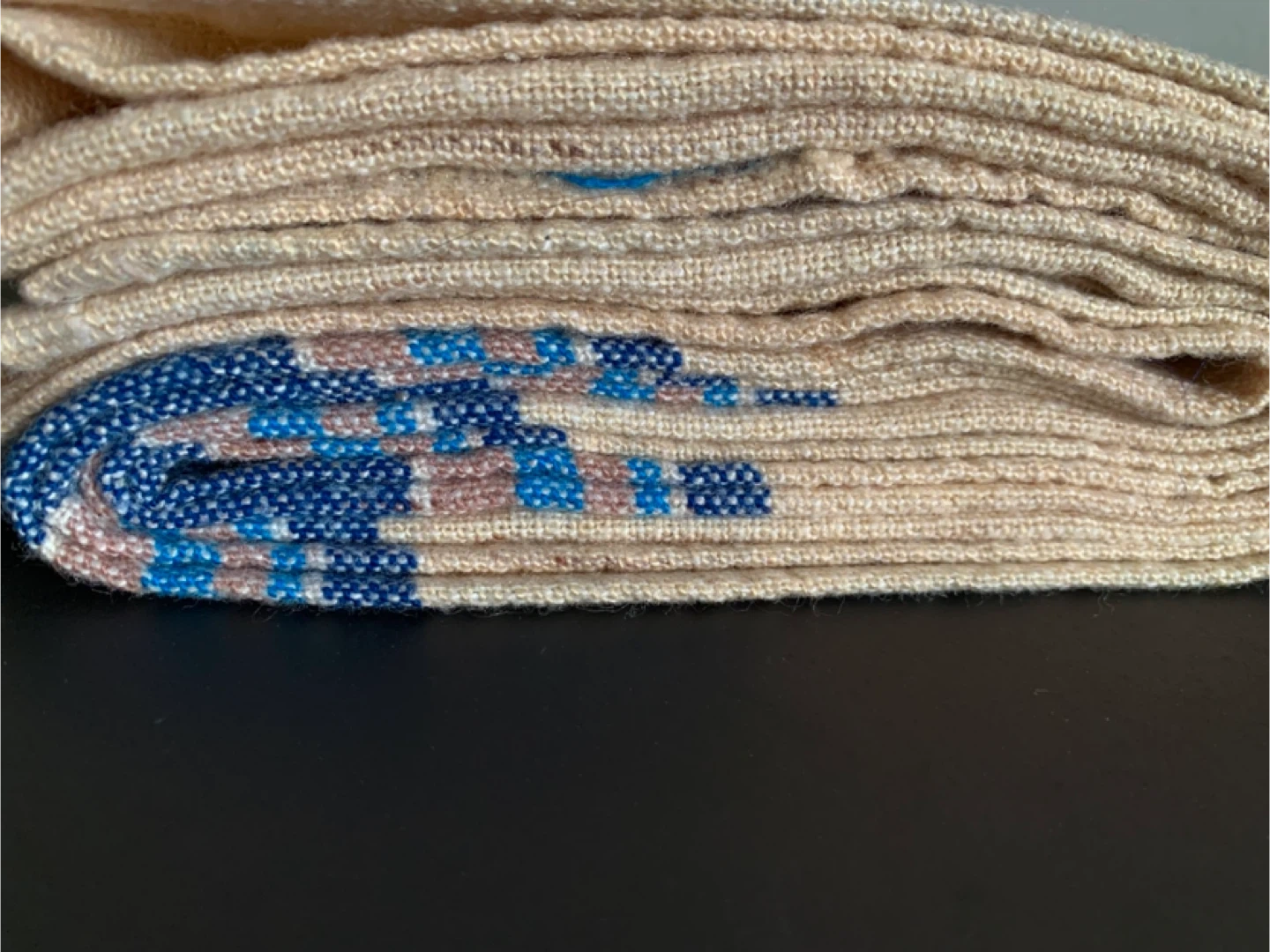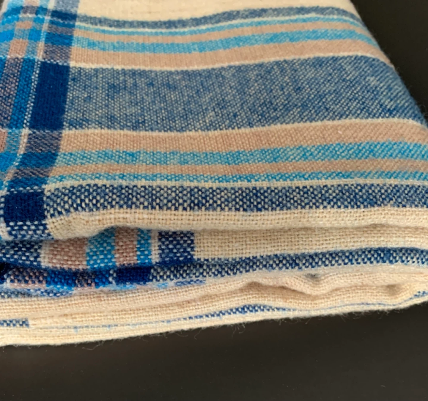 1000+Vintage French tablecloth handcrafted with 100% pure Wool. It is in a brand new condition! Beautifully adding a touch of charm to your dining space! The pattern features a classic French blue and beige pattern design. Vibrant and unique looking this piece is very pleasant to the eye and touch. Real treasure for collectors. 67"x 48"