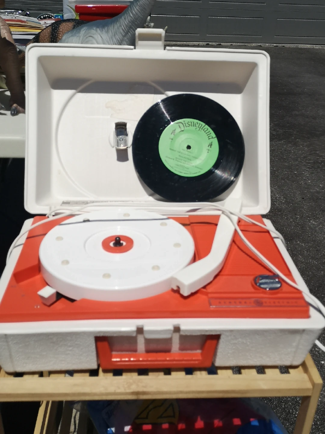Selling a vintage General Electric Solid State record player! It comes with2 Disney Records. It's in great working condition.