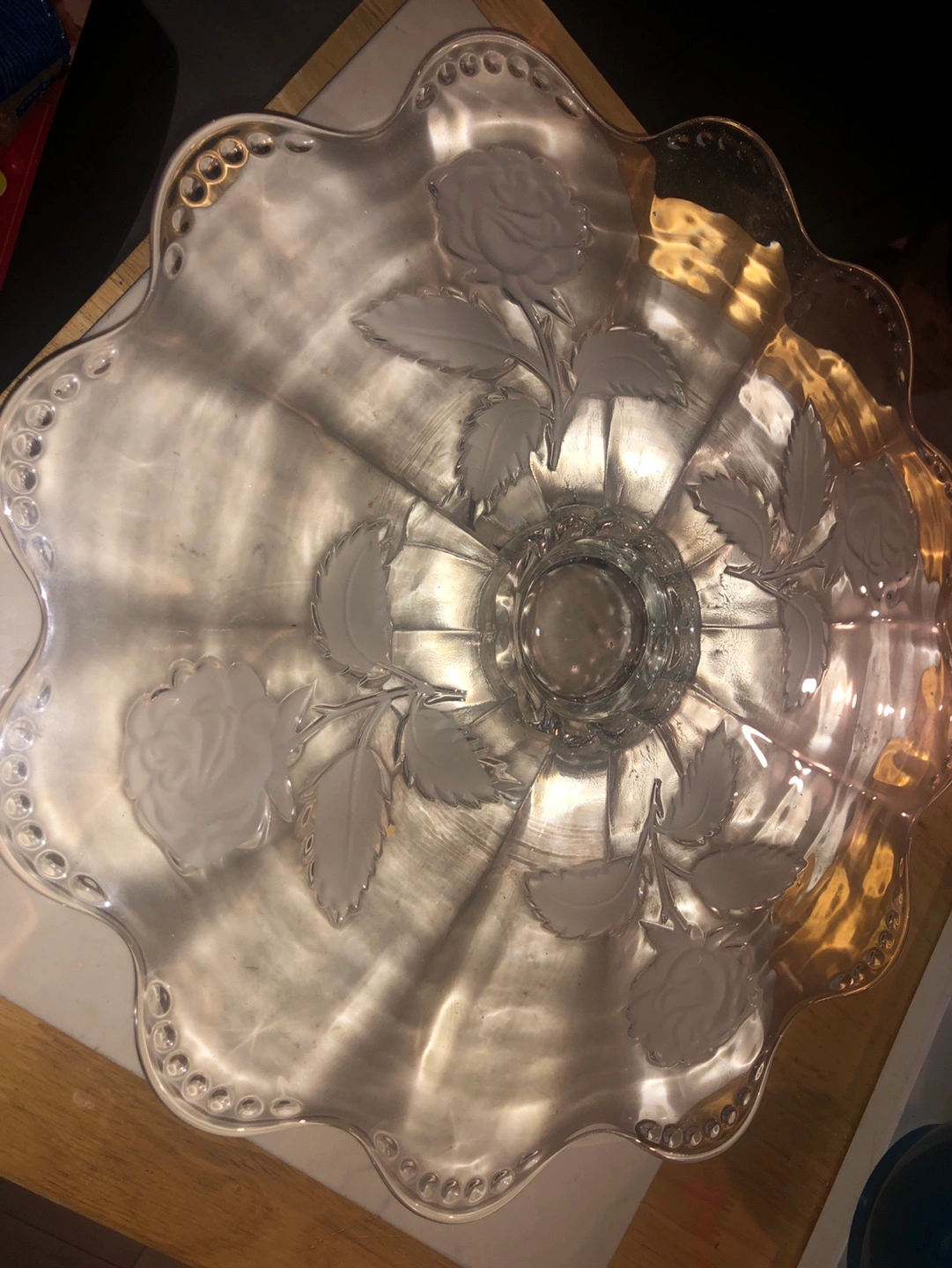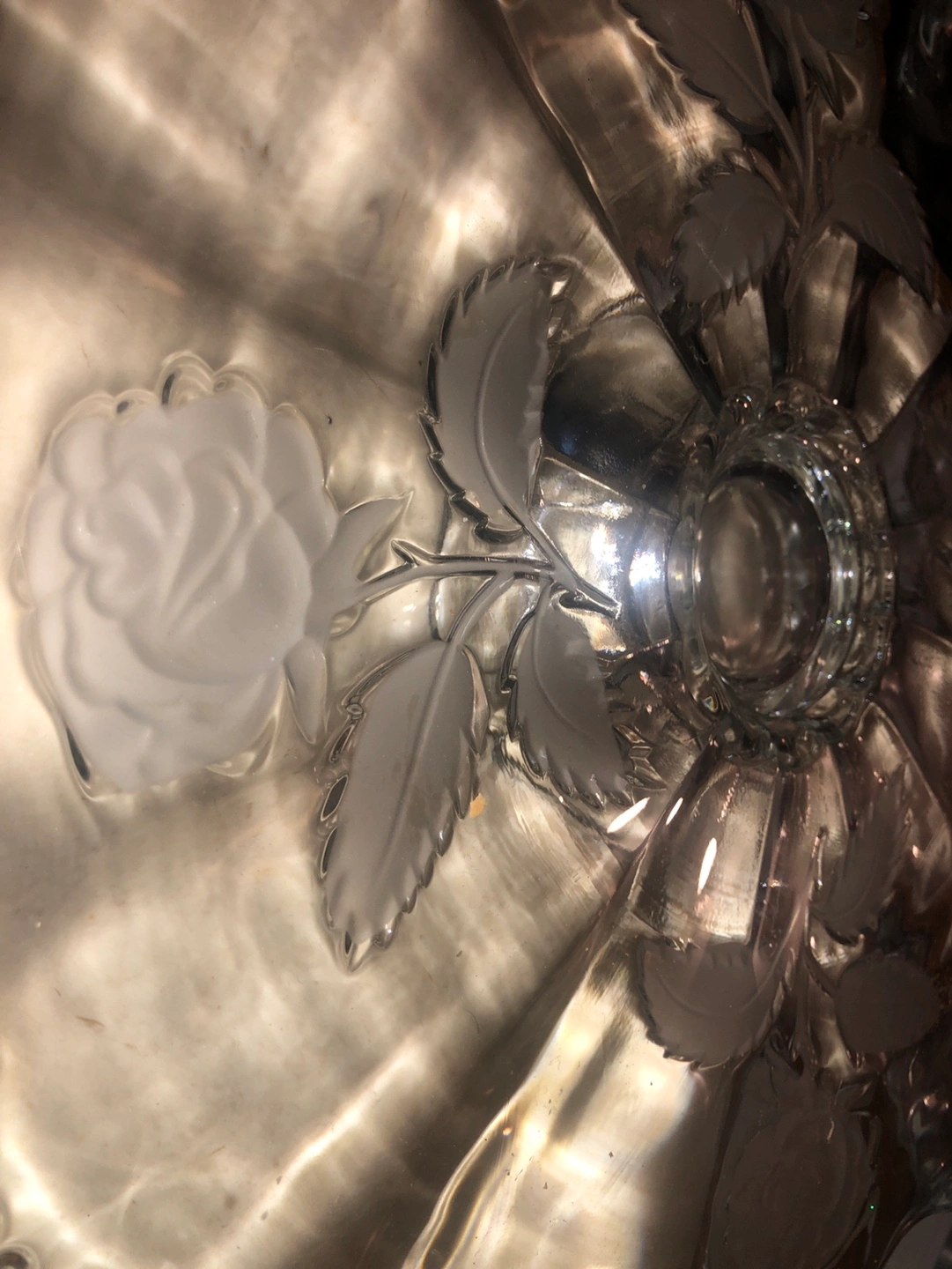 Vintage Glass Cake Stand with Rose Design