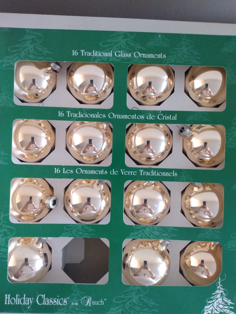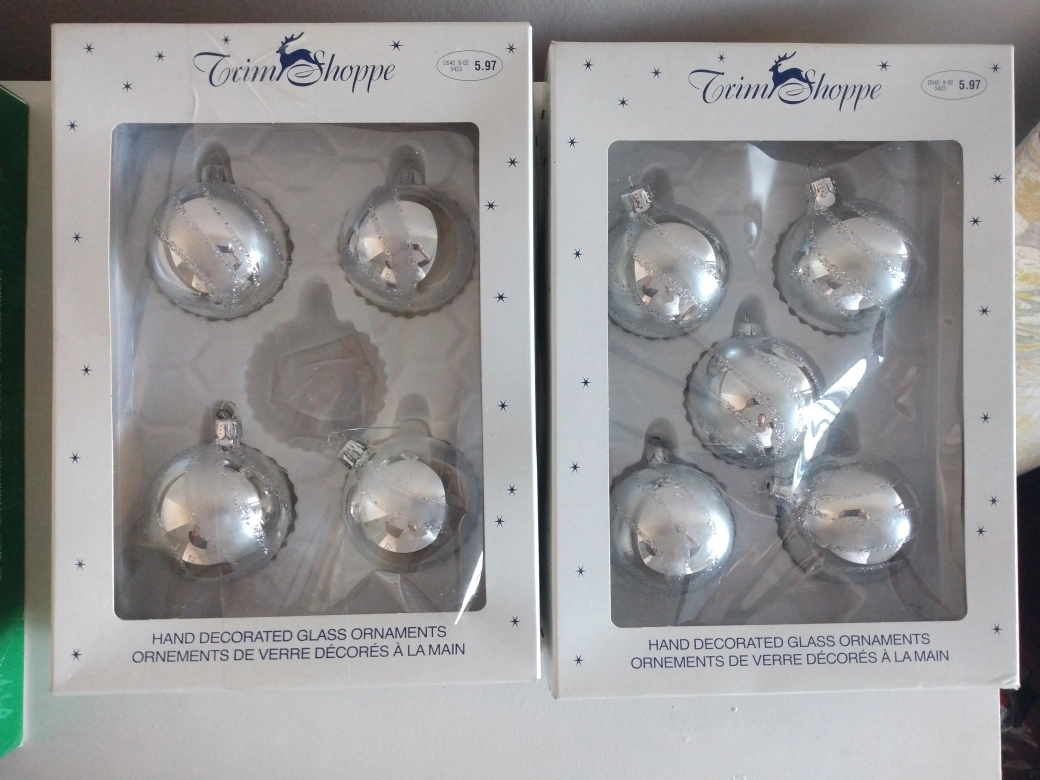 Vintage glass ornaments. Gold ornaments are made in the USA and the silver are made in Romania. Price is for both the $15 for the gold and $10 for the silver. Price is firm. Pick up in Mississauga or downtown Toronto (Union Station).