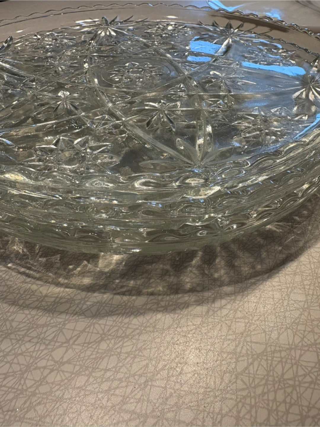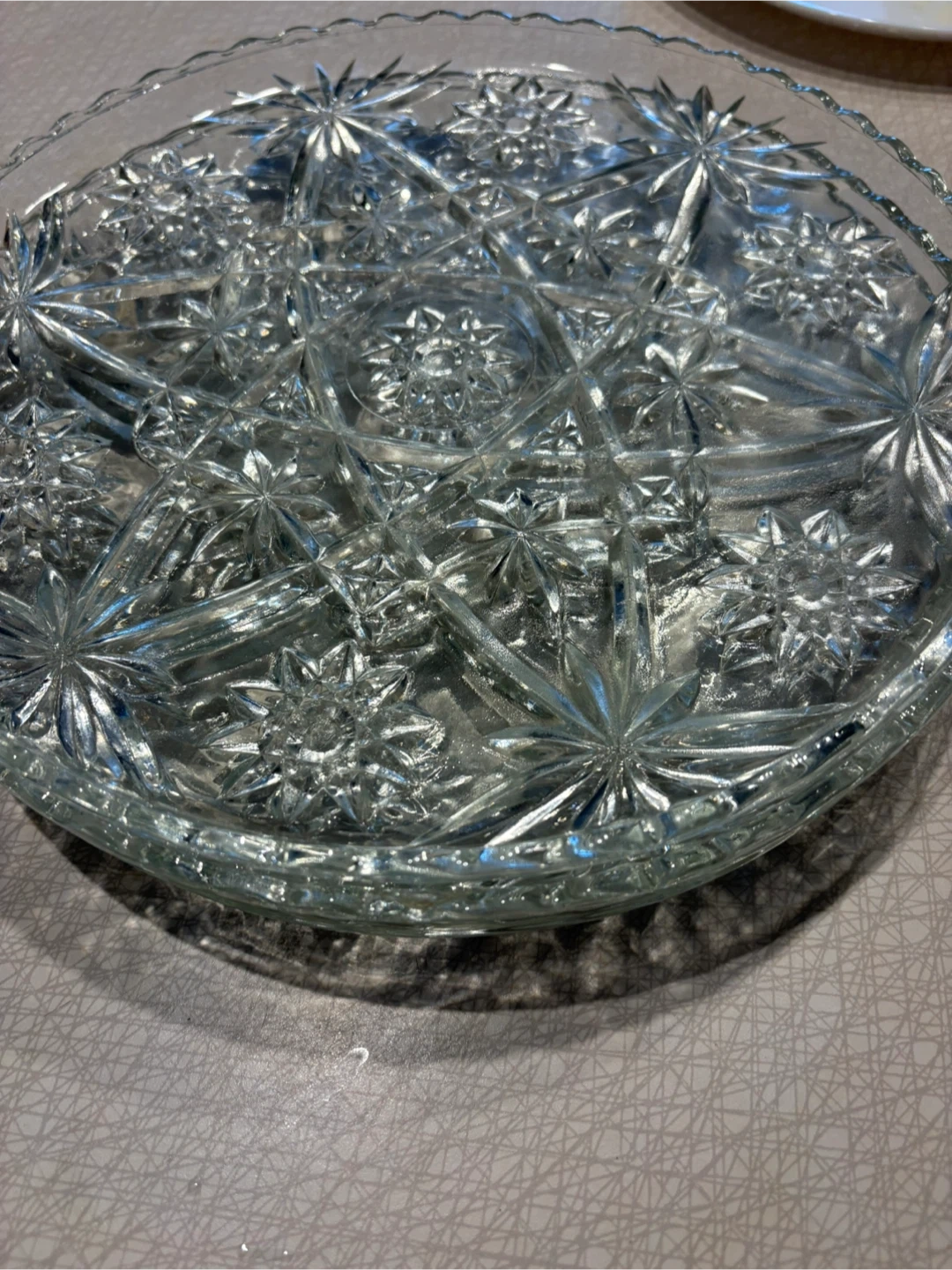 75Selling a lovely vintage glass serving plate! It features a beautiful starburst pattern and is perfect for displaying appetizers or desserts. It's in great condition and ready to add a touch of elegance to your table. The first picture one is 12$, the second picture have three plates, each one for 6$ ,pick up at Morley trail NW