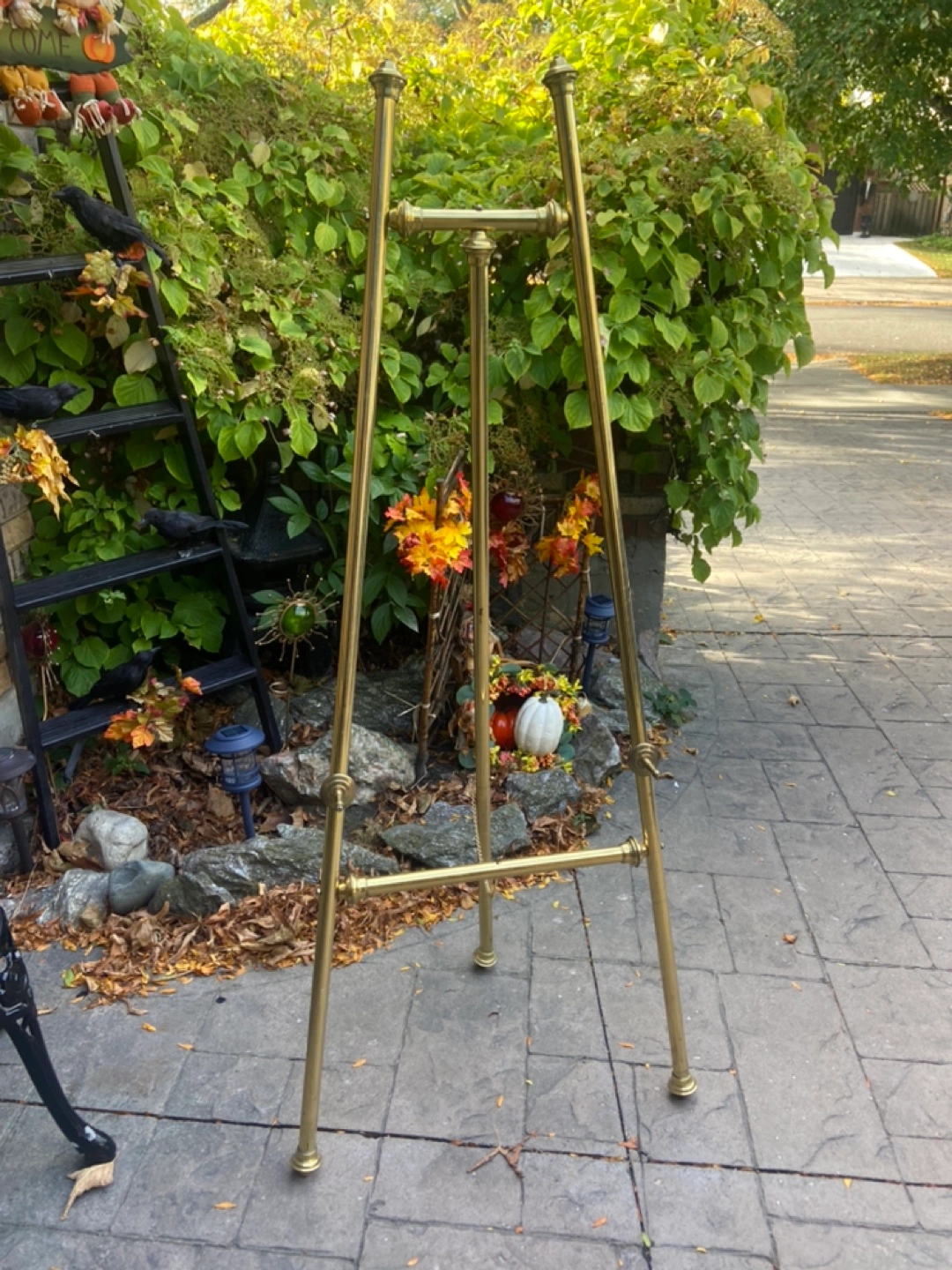 Selling a gold easel . It's in great condition and ready to display your artwork or Needs polishing & tightening If Ad is up it’s available