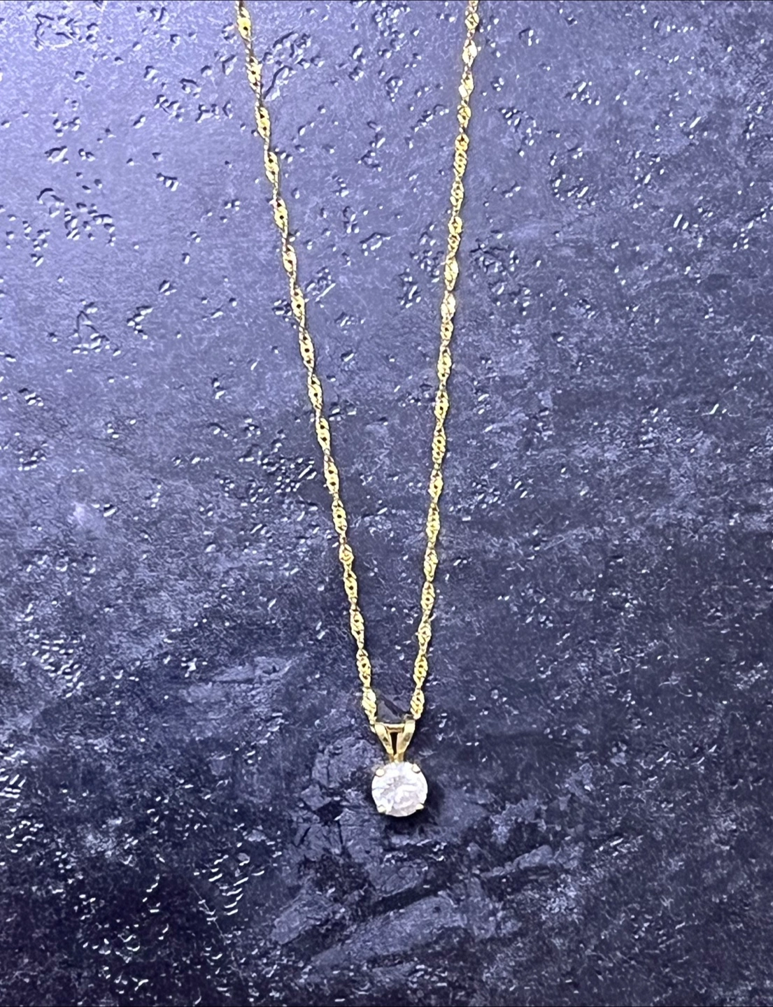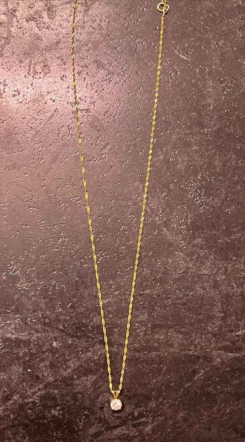 43Beautiful gold chain necklace. Features a small diamond. Delicate and elegant design. Perfect for everyday wear.