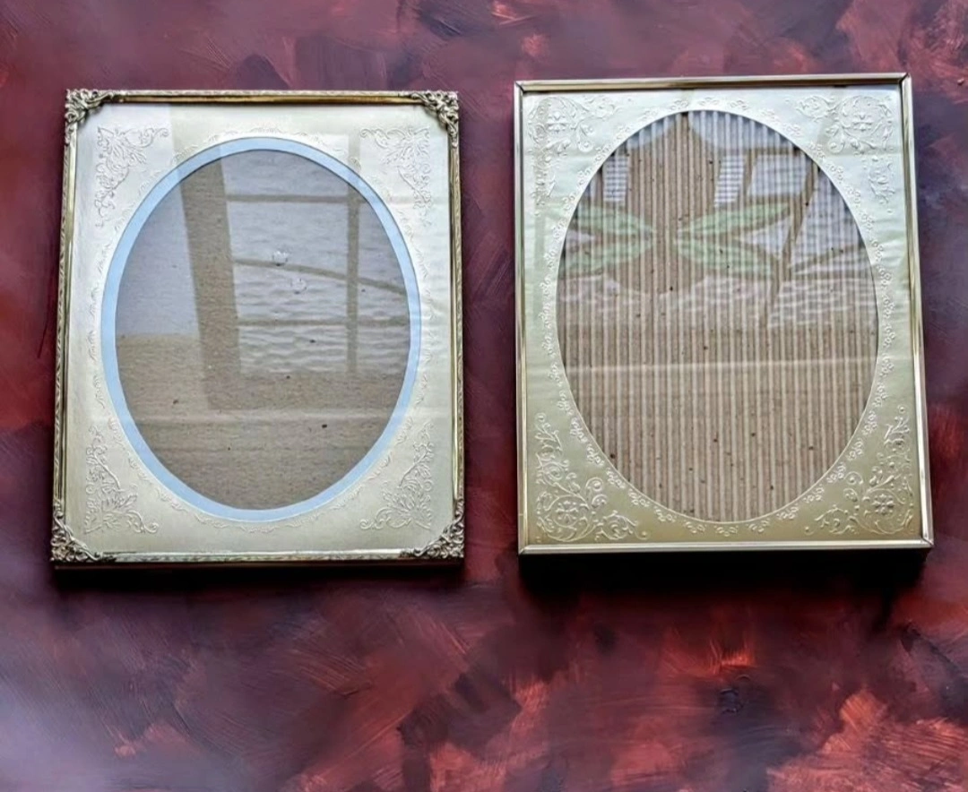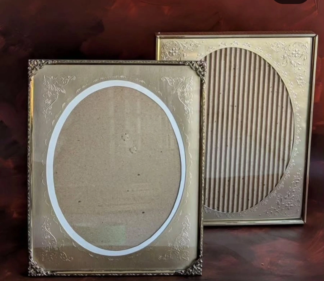 103Two Vintage Brass Oval Ornate Picture Frames! 8 x 10 Engraved Metal Mats. Cardboard stands. Excellent Condition. $25 each. Cash both $40 No shipping Fennell and Upper Gage Hamilton ●● house with parking Please view my many listings