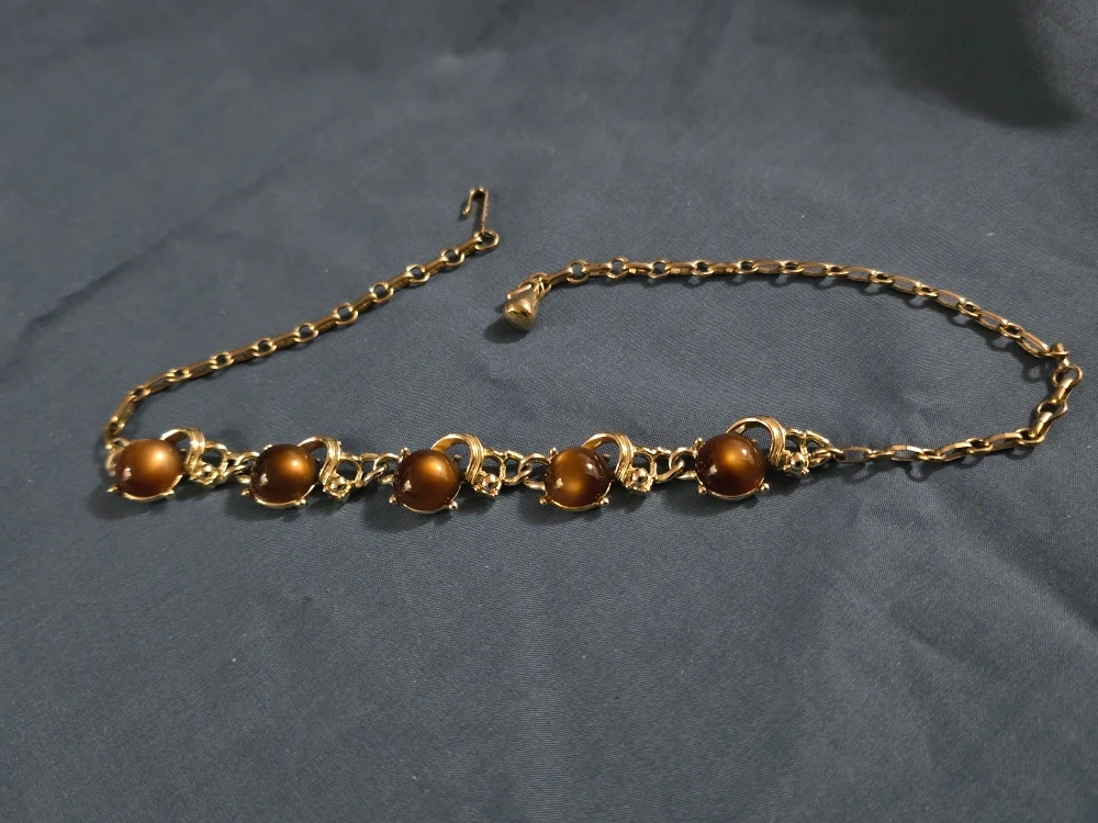 Show allVintage Gold Toned Tiger Eye gemstones Necklace