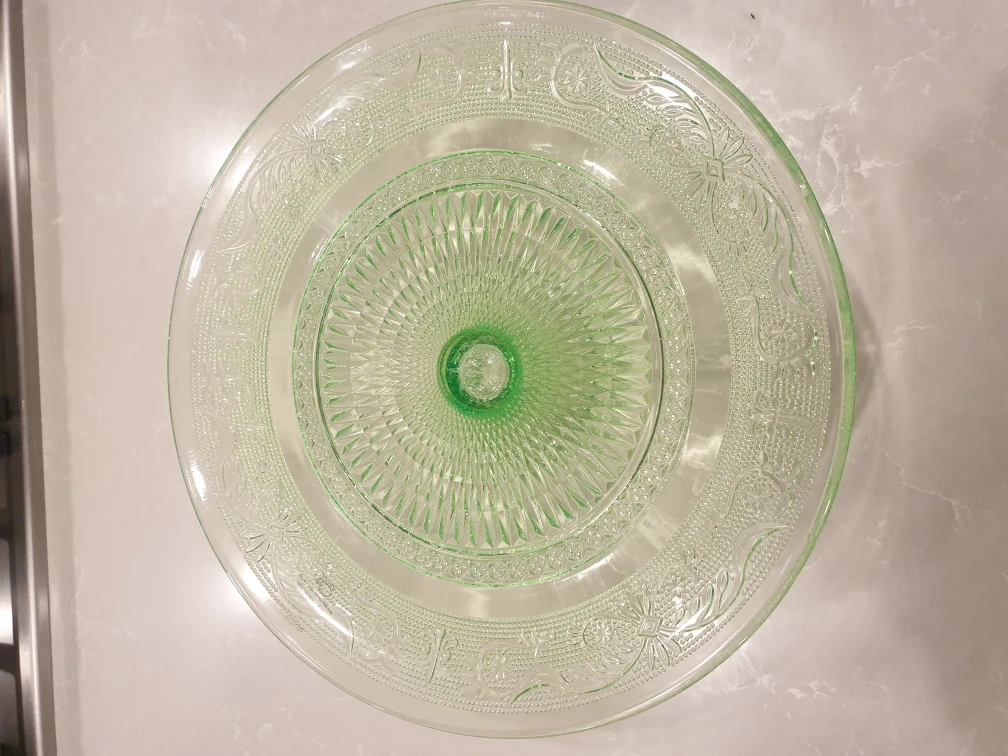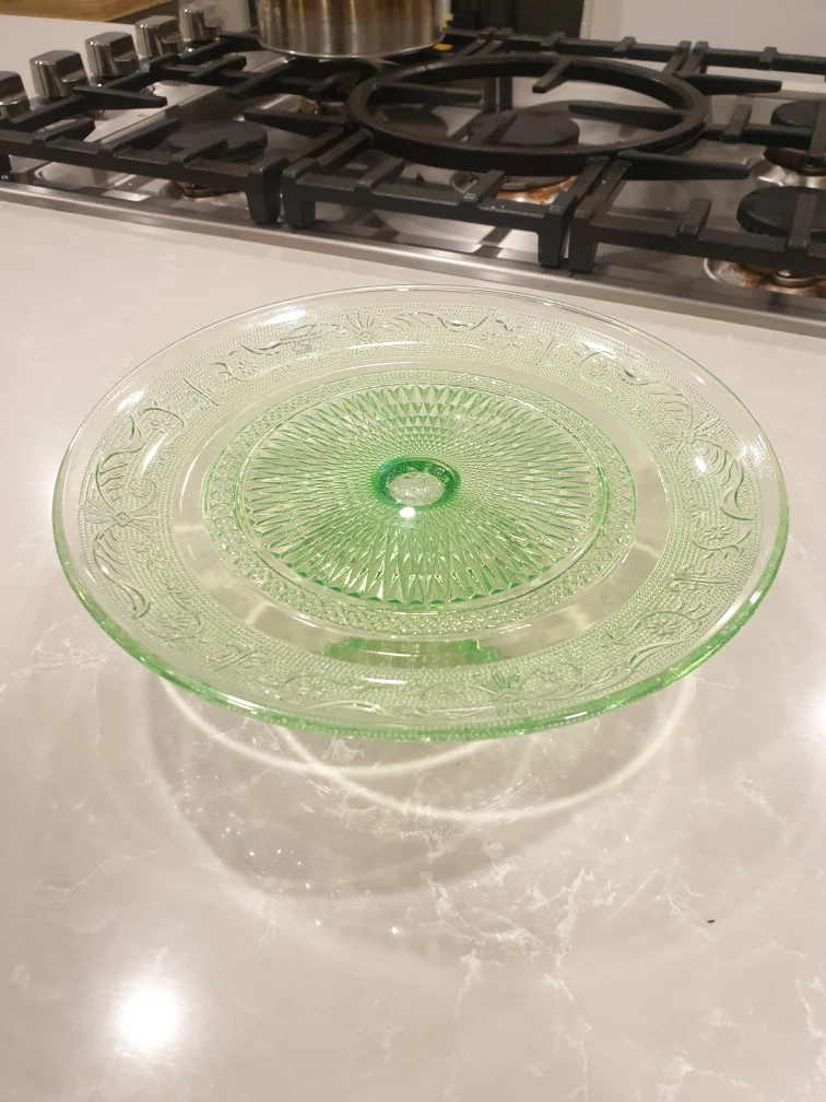 Selling a beautiful vintage green depression glass cake stand! It's in great shape and would look lovely displaying your baking or as a decorative piece.