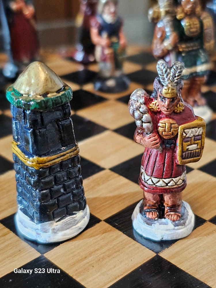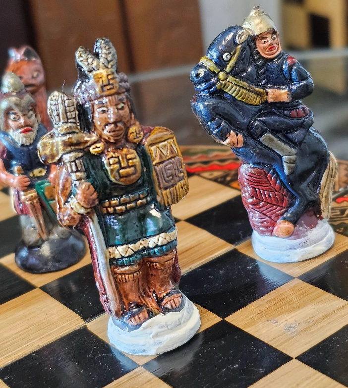10Selling a unique, hand-carved chess set. The pieces are intricately detailed and hand painted and come with a decorative hand painted board. A great addition for chess enthusiasts or as a decorative item!