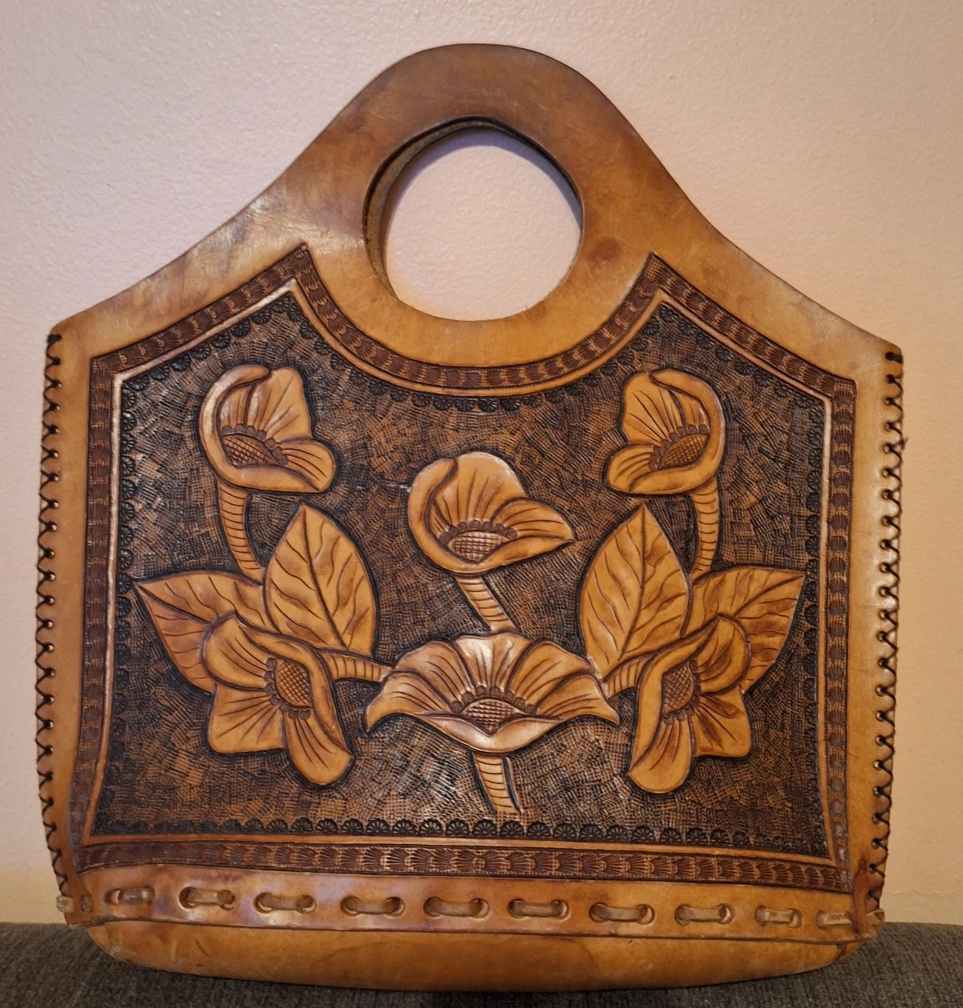 Vintage Hand-Tooled Leather Floral Tote Bag