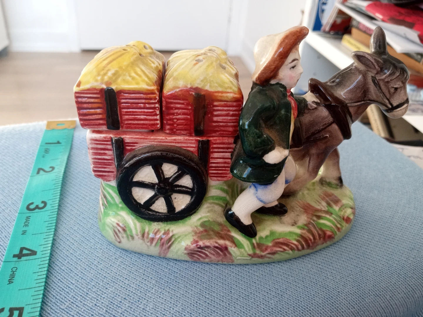 46Unique mid century country farmer hay cart salt and pepper shakers