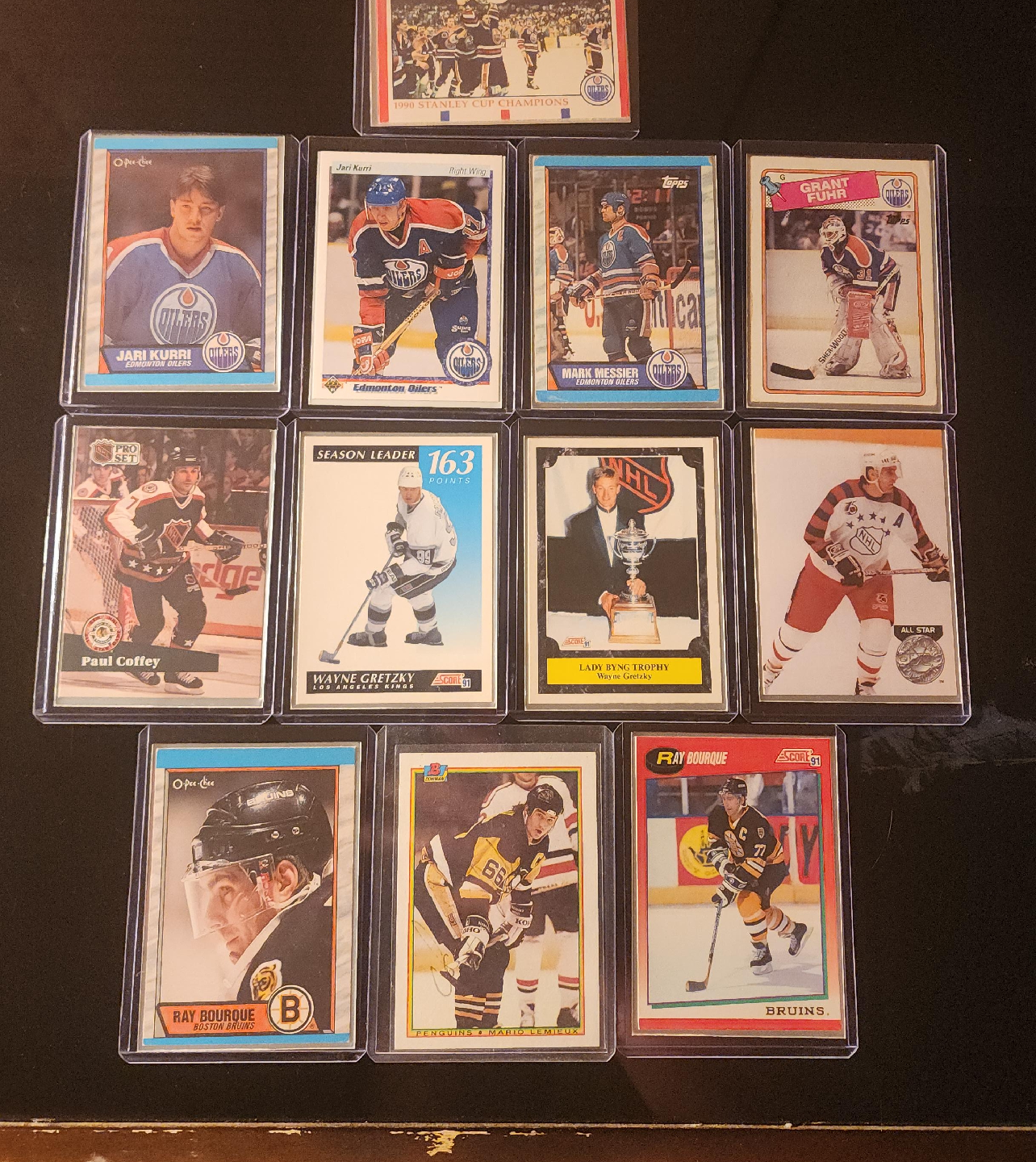 83Selling a collection of vintage hockey cards featuring some legends of the game! You'll find cards of Wayne Gretzky, Jari Kurri, Mark Messier, Grant Fuhr, Paul Coffey, and Ray Bourque. A great addition to any hockey fan's collection!