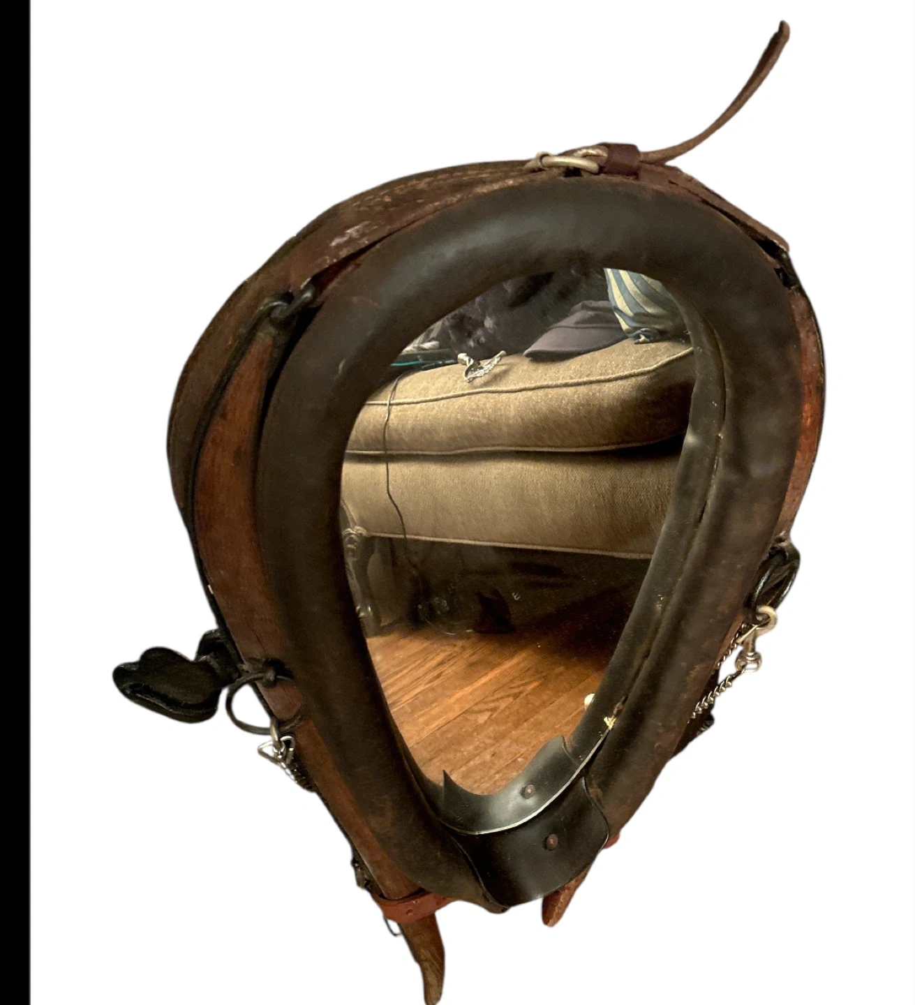 Unique mirror crafted from a vintage horse collar! This piece adds a rustic leather touch to any room. It's in good condition and ready to be a conversation starter in your home I have had this in storage since 1985. Having just moved it just is not going to fit anywhere Pet and smoke free home. This was purchased from Ritchies auction house on Richmond street for $60.00 1985 monies which equestrian to 179.00 in today’s money 😱 Parkside Drive south of Bloor and keele station area