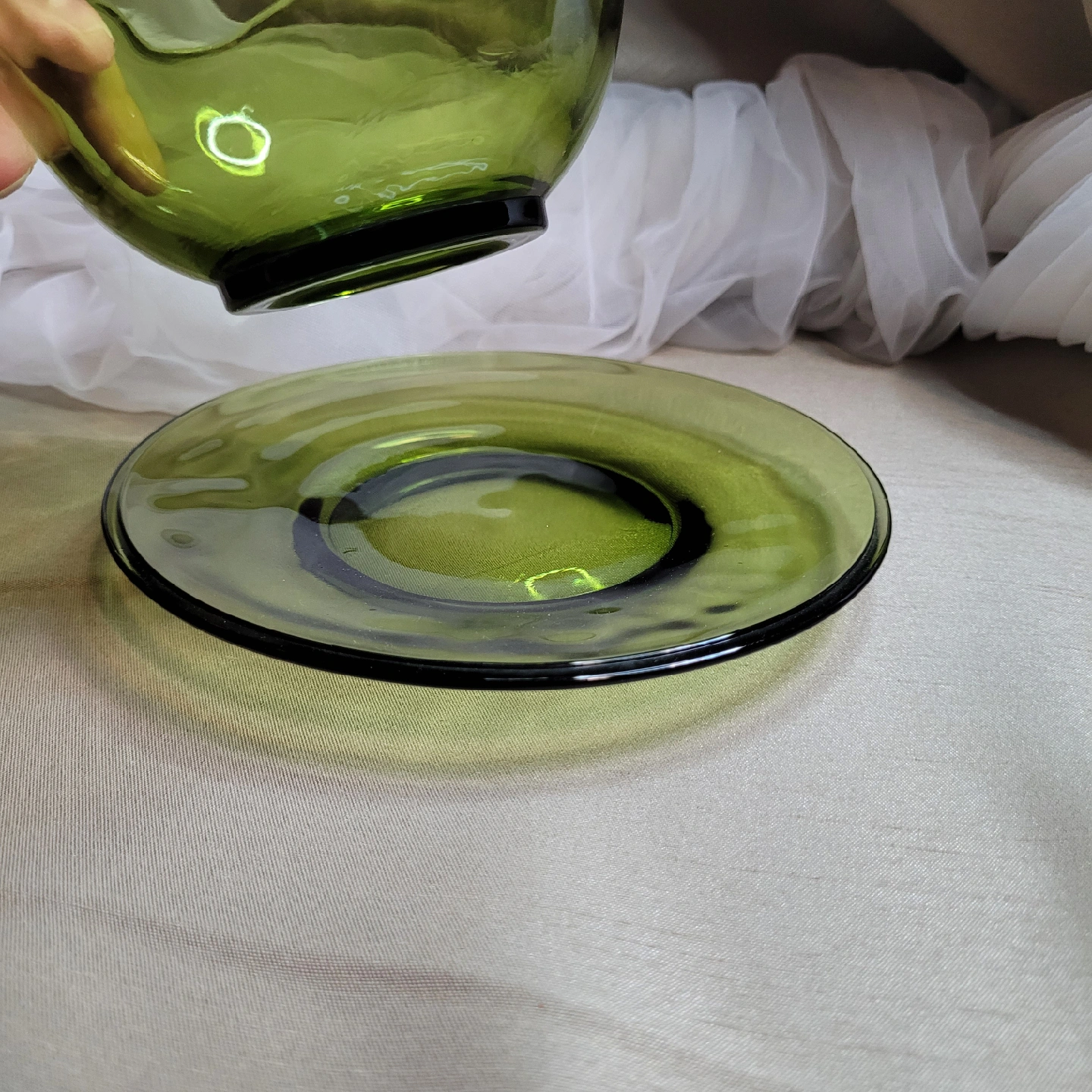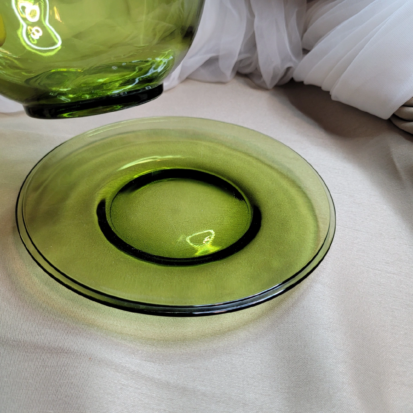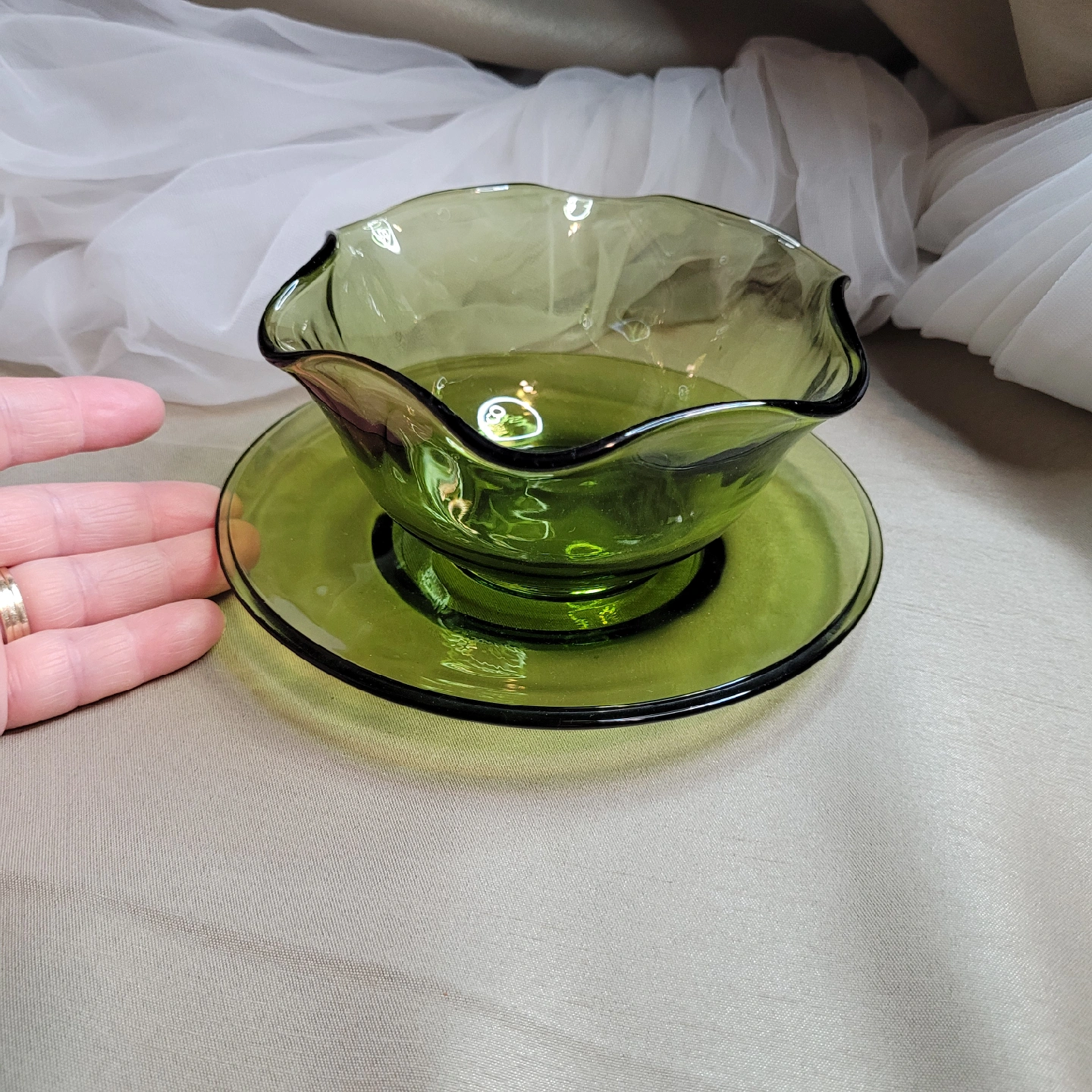 Vintage Indiana Glass Ruffled 2 pc Olive Green Set 6 1/4" Plate & 5 1/2" x 2 1/2" Bowl Selling together Excellent Condition please see all pictures Please See all my Other Listings, Bundle & Save for a Better Deal! Located in Bradford, May be able to Meet, Shipping Offered at Buyers Expense, Please contact me for more Info & to make arrangements, sorry no holds without an ET, Thank you so much for Looking!