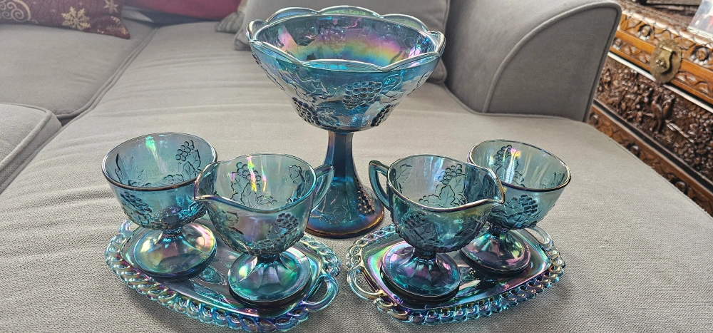 Vintage Indiana Harvest Grape Style Blue Carnival Glass Set