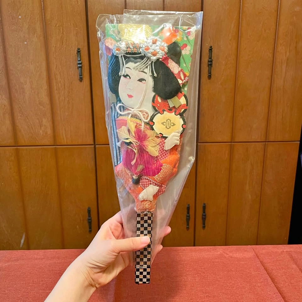 86This vibrant Japanese Hagoita paddle showcases an intricate geisha design with colorful details. Condition: NEW with original packaging (slight cloudiness on the plastic due to age) Dimensions: Approx. 16.5” long × 5.5” wide at the top × 1.25” handle width A stunning piece of Japanese decorative art, perfect for display or gifting.