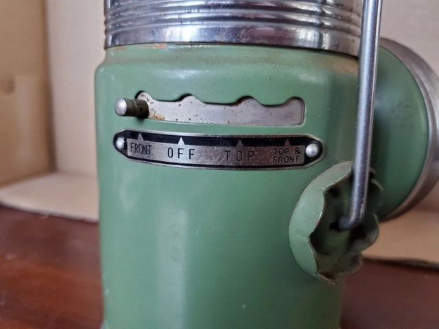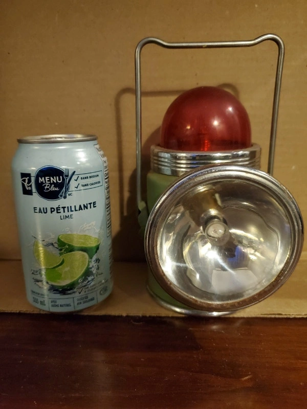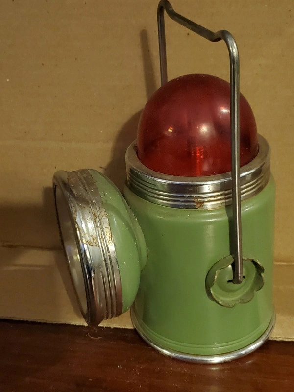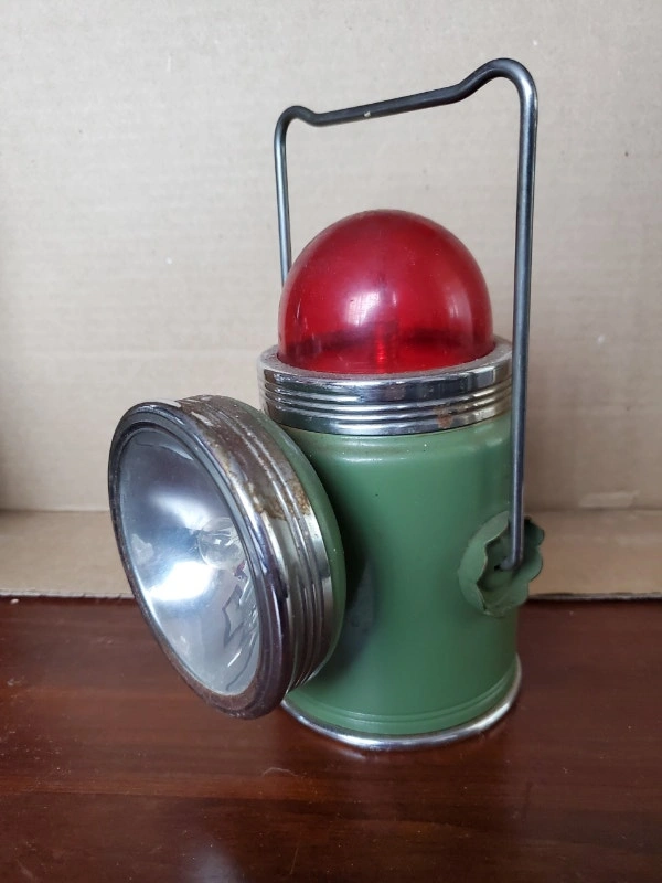 0A working vintage lantern/flashlight. It's about 6" tall (7.25" including the handle) and takes regular batteries. $20.00, pick up only