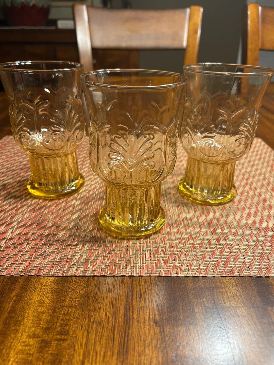 60Selling a set of three vintage MCM amber coloured glass footed tumblers. They are in great condition, no chips or cracks, and feature a lovely floral design. Each glass is approximately 6 inches tall. Perfect for adding a touch of retro charm to your kitchen! 💵 Bundle with any of my other listings for a discount. 🤝 Pickup at a public location in Fort Erie. 📦 Bundled orders over $75 — can arrange public location delivery within the Niagara region. 💰Cash only