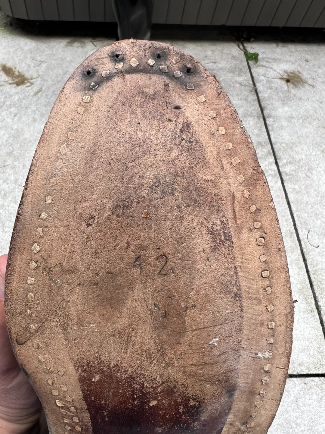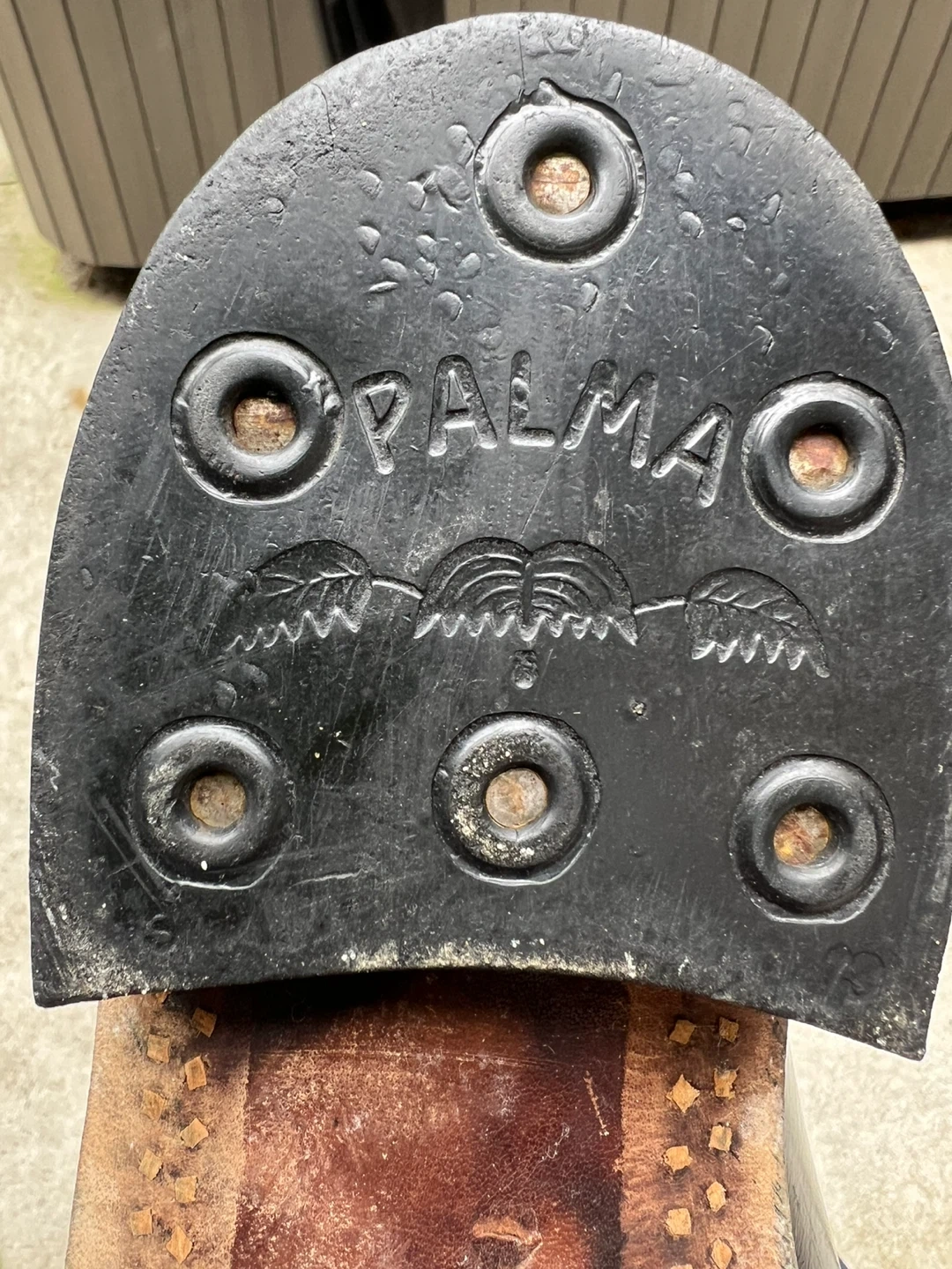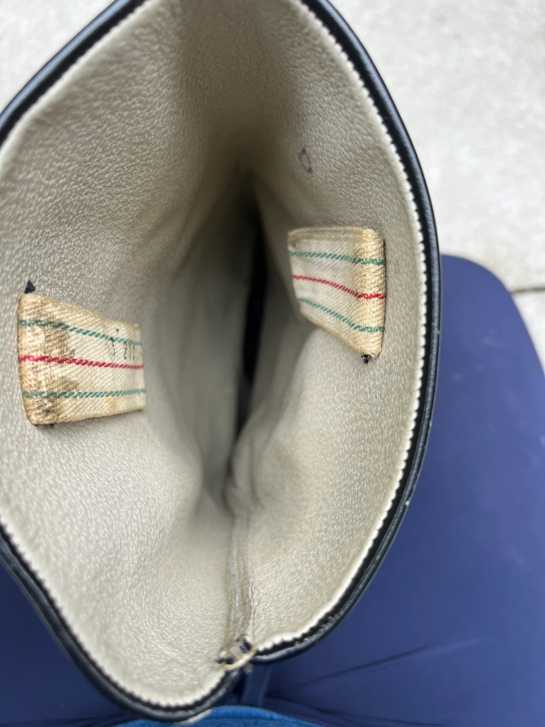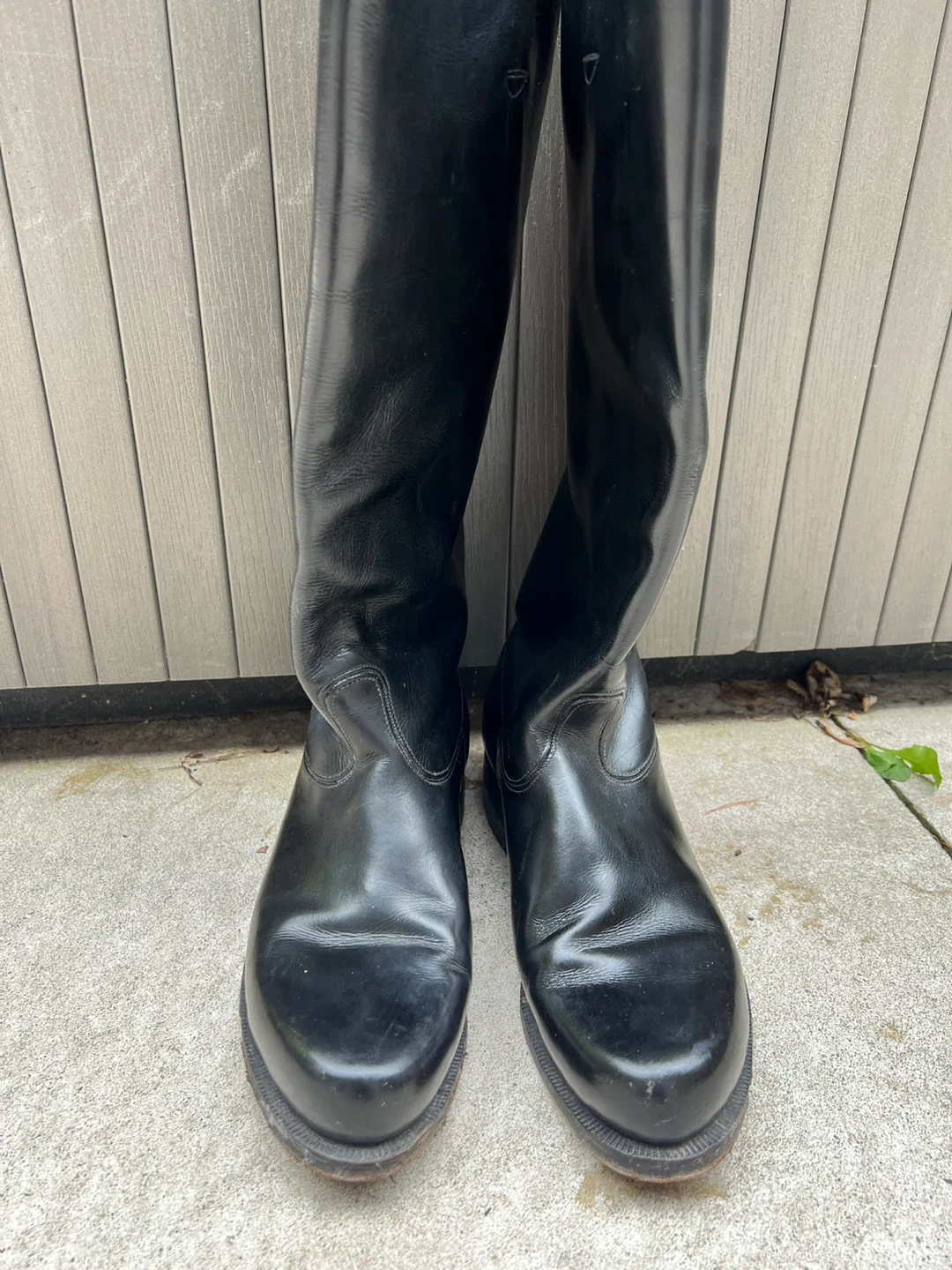 VINTAGE Palma Black Hungarian Military Equestrian Riding Boots Approx 17” high with heel Black Strong Leather uppers and Leather soles and heels Hand Crafted in Spain Utilized in Hungarian Military Era 1950’s Inside Bootstraps are Hungarian Flag 🇭🇺 Colours Will require comfort insoles to suit your need Good Used Condition Size 42 European size, or 9 US Cash and Carry only We are located in Oakville, on Third Line, South of QEW and North of Lakeshore