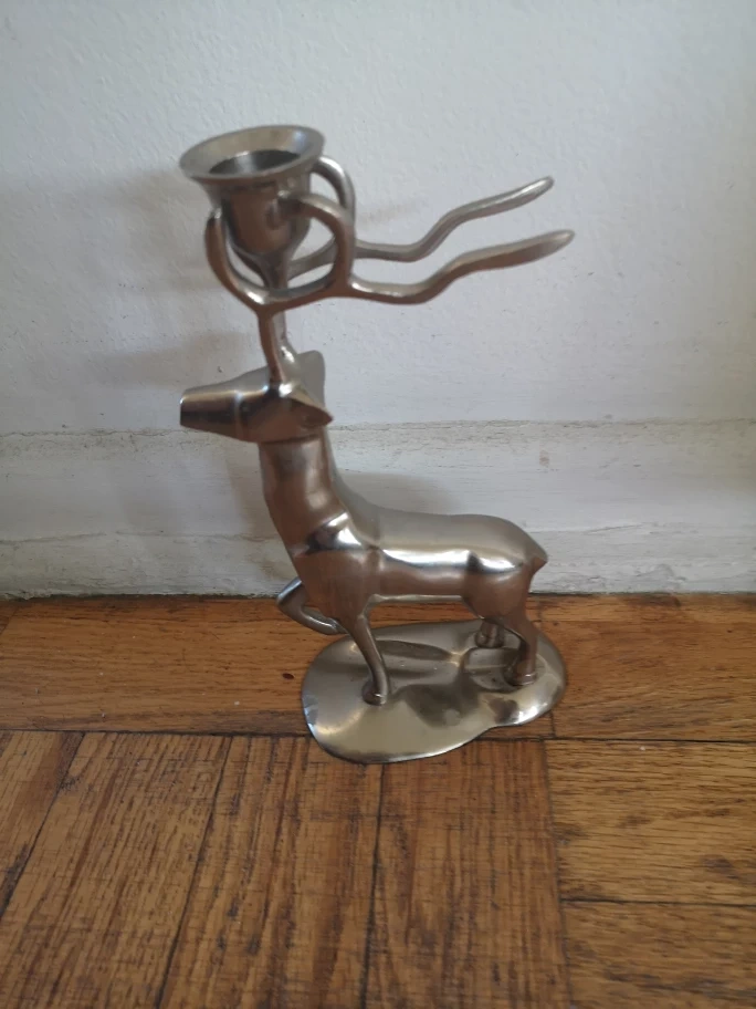 Selling a unique vintage metal deer candle holder. It's in great condition and would make a lovely addition to any room. The deer design adds a touch of whimsy and charm!