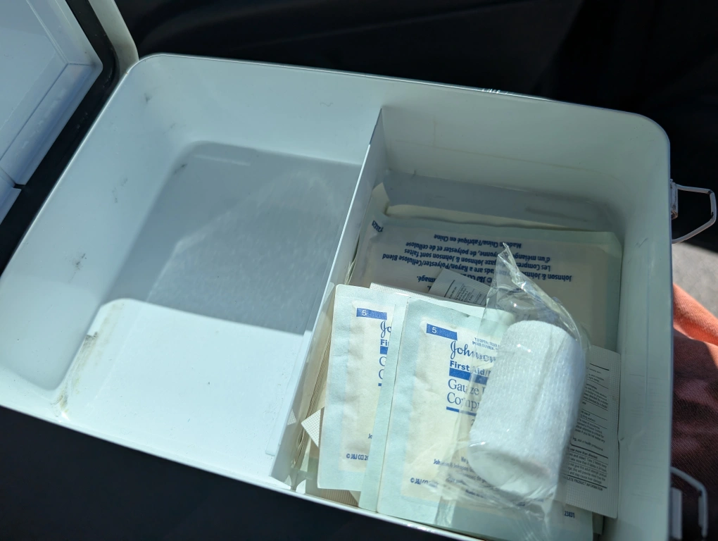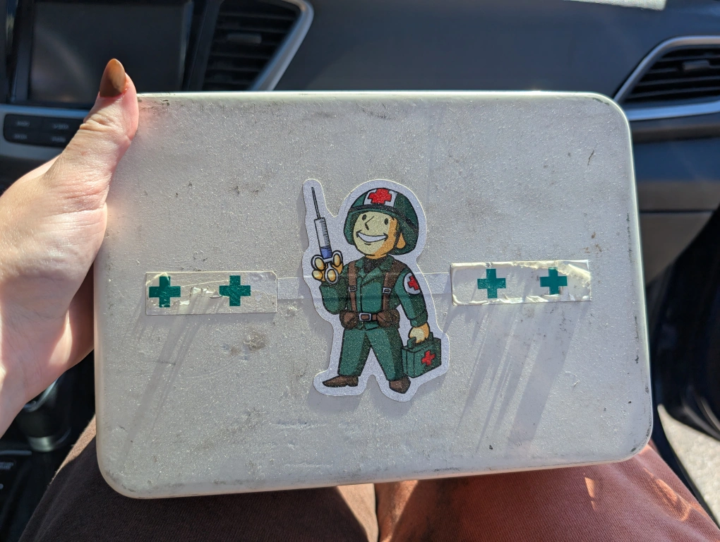 Selling a vintage military first aid kit, proudly made in the USA. It's got some wear and tear, but that just adds to its character! Inside, you'll find compartments and some original supplies.