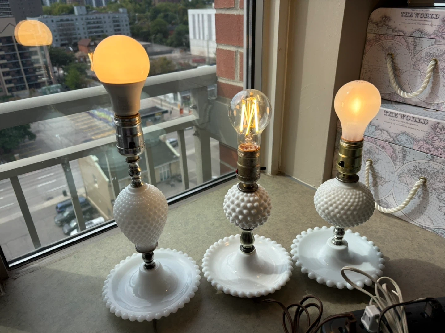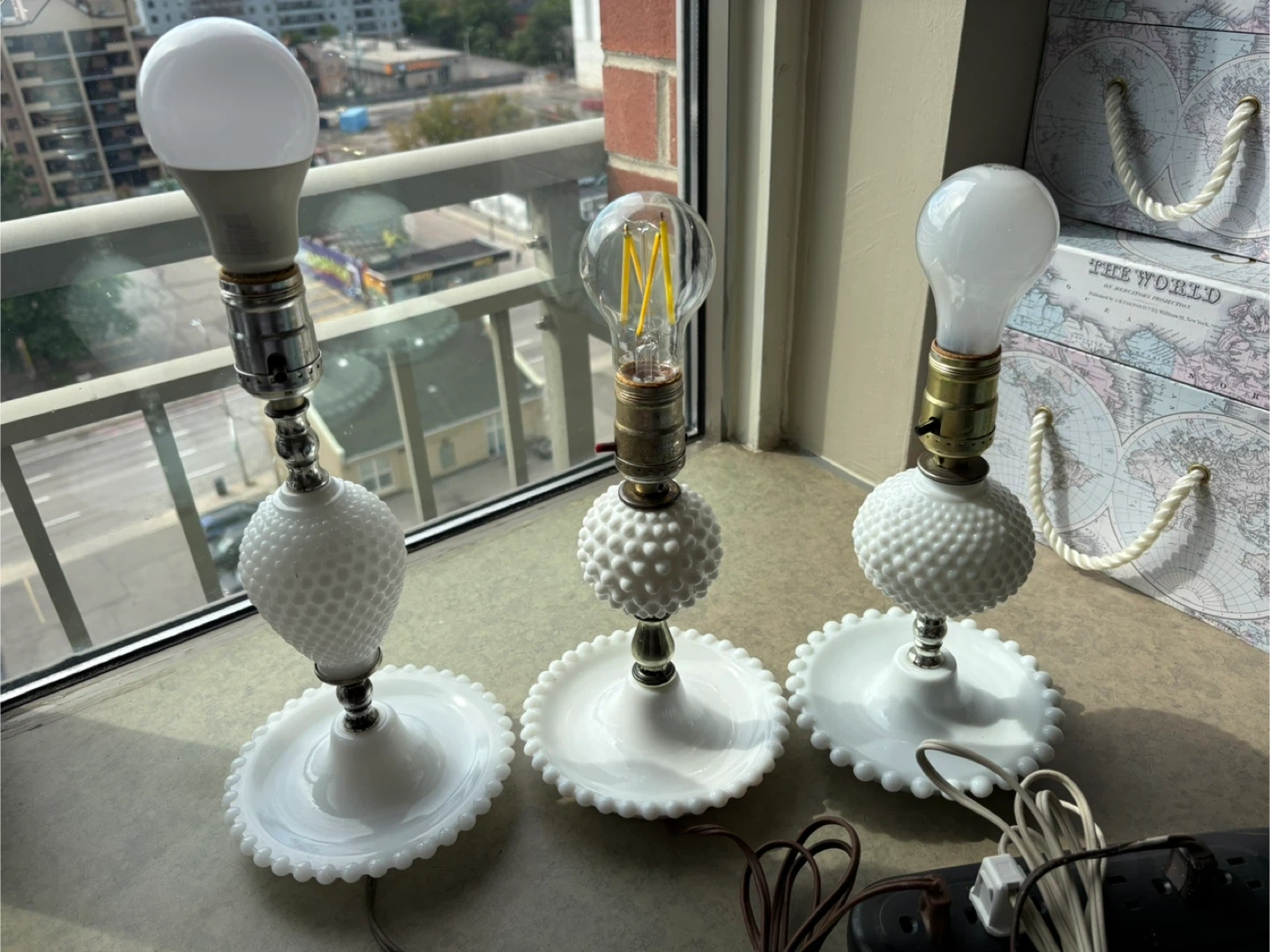 Vintage Milk Glass Hobnail Lamps - Set of 3