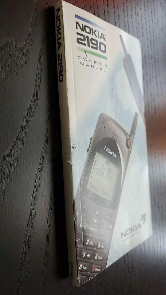 10Nokia 2190 Owner's Manual 1997 ( I believe) This is JUST THE OWNER'S MANUAL. ( NO PHONE INCLUDED) Own a part of history. Only $5 Surrey/Clayton/Langley area 194th and 68th Ave Thanks for looking.