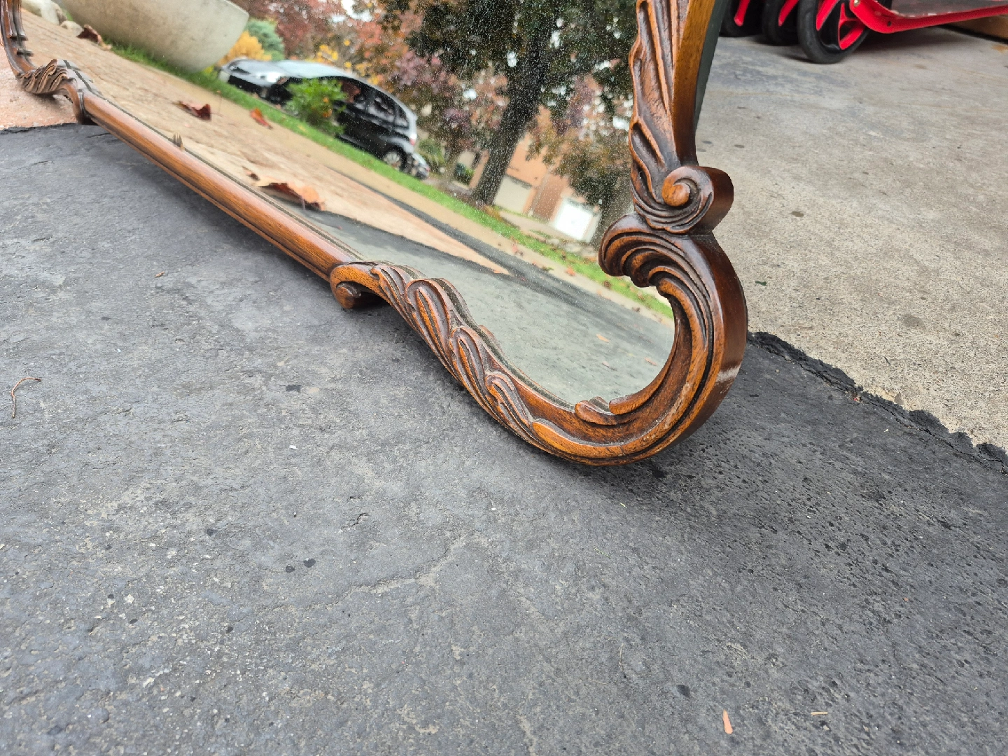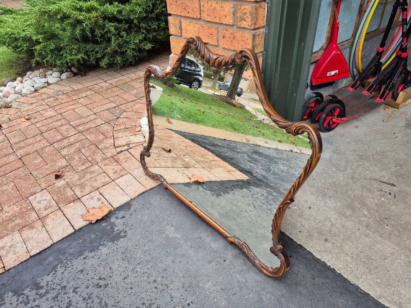 18Selling a beautiful vintage mirror with an ornate solid wood frame. It's in good condition and would add a touch of elegance to any room. Amazing and unique decor addition to your home or cottage. Measures: 36 inches long by 33 inches high. Get it today!