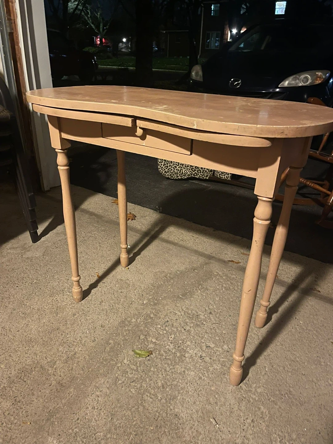 Selling a cute vintage side table! It's a lovely pink colour and would be perfect for a small space. It has a drawer for storage too