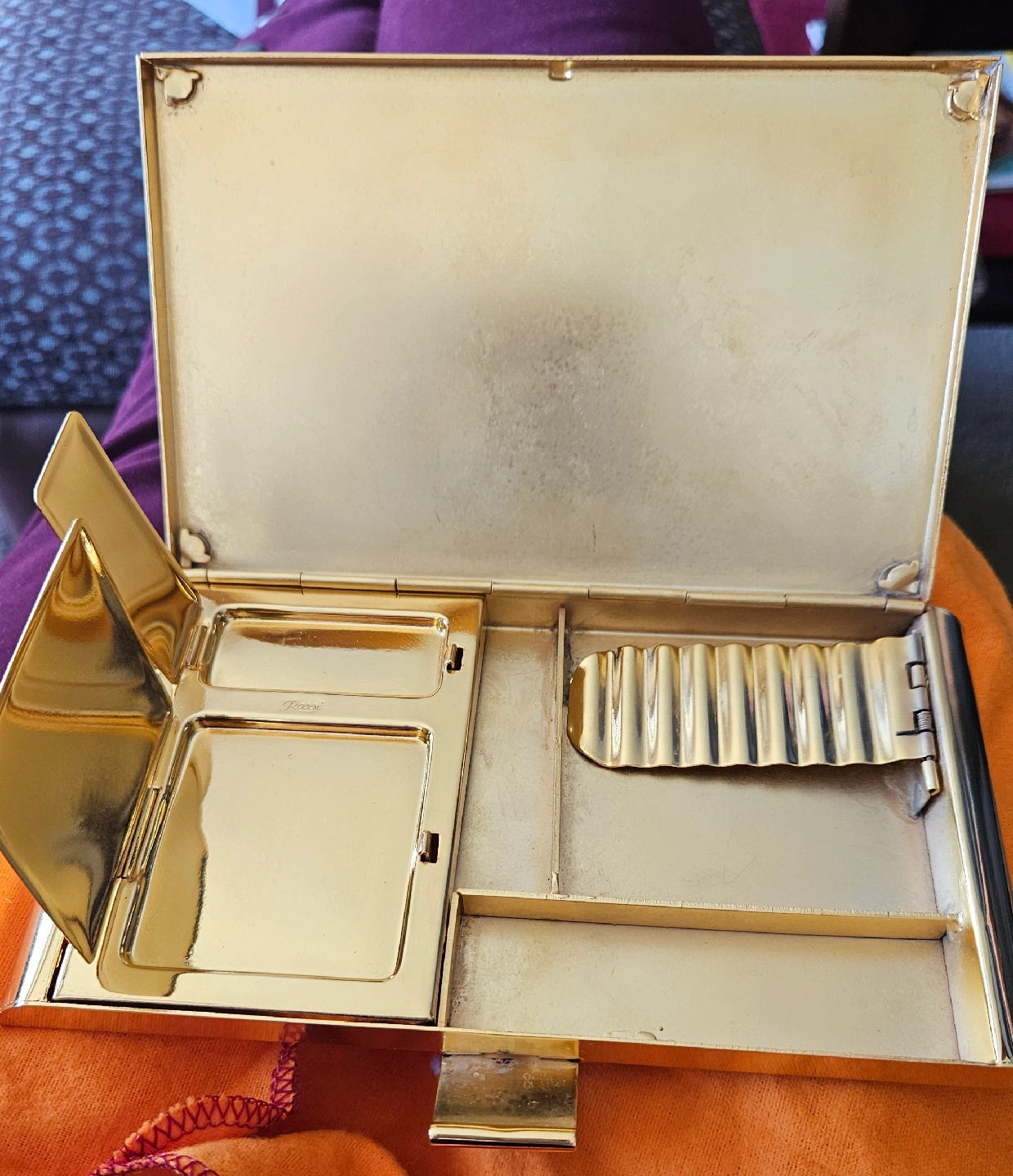 74Selling a vintage Poree cigarette case in gold tone. It shows some signs of wear inside, but it's still a beautiful piece! Perfect for collectors or anyone who appreciates vintage accessories