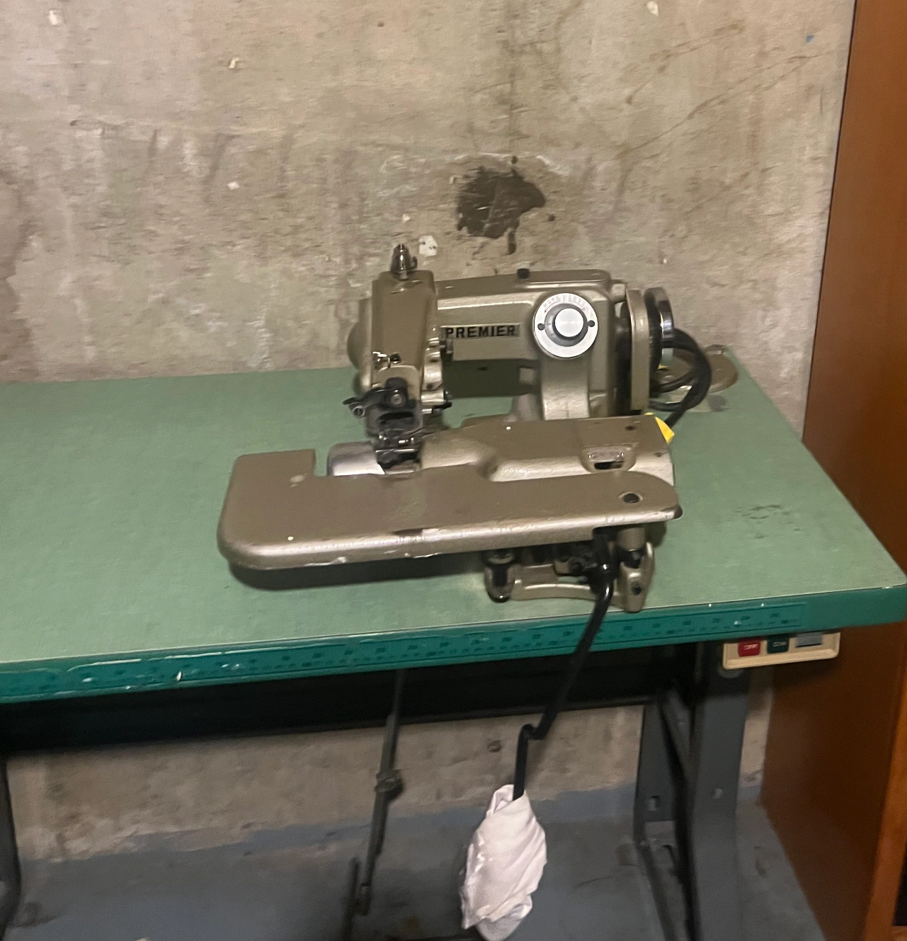 Industrial sewing machine. Older model. Needs some cleaning. Comes with table.