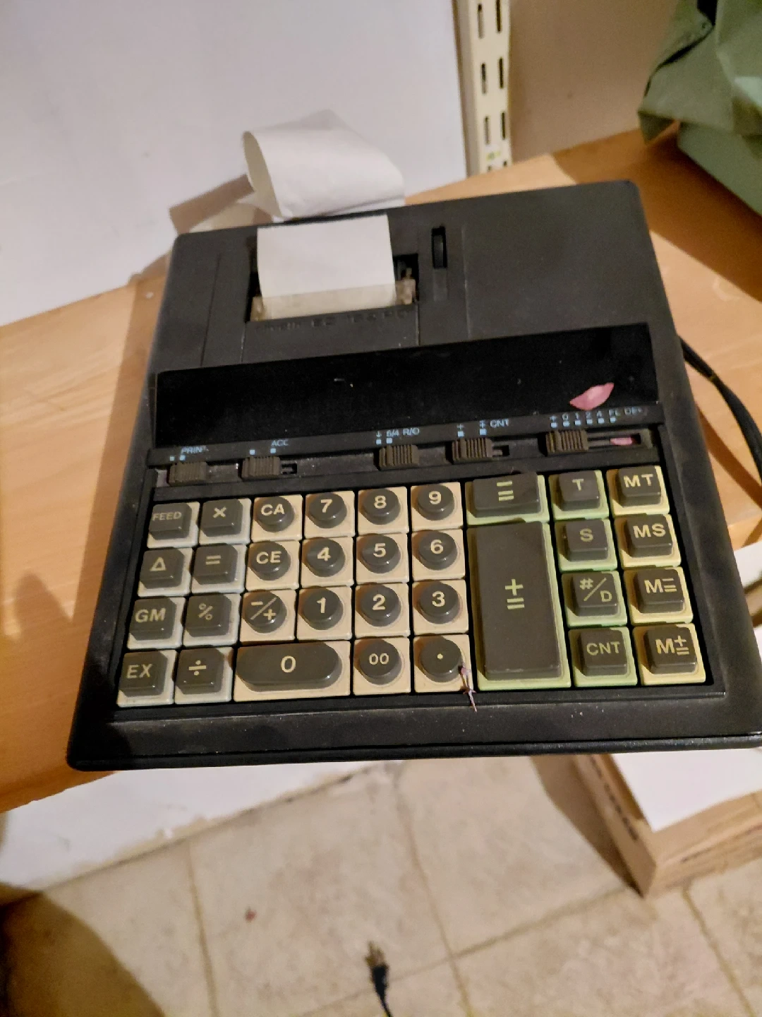 20Selling a vintage printing calculator. It has a paper roll for printing calculations and a variety of functions. It shows some signs of use but is overall in good condition for its age