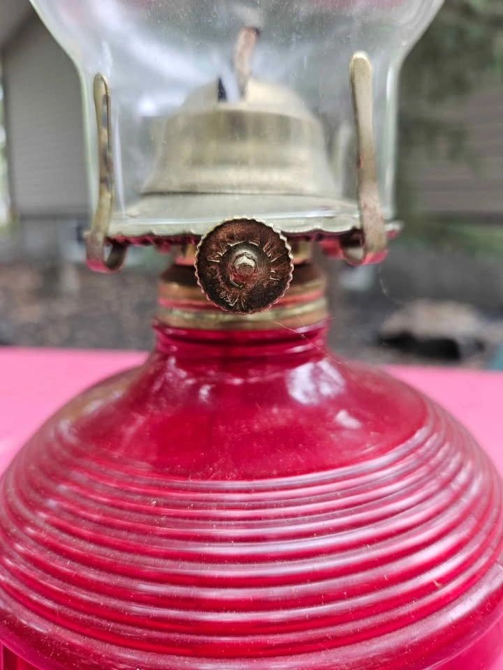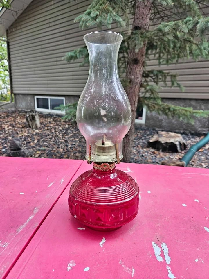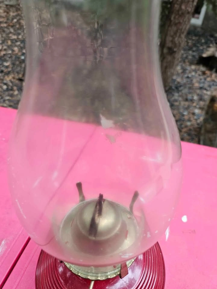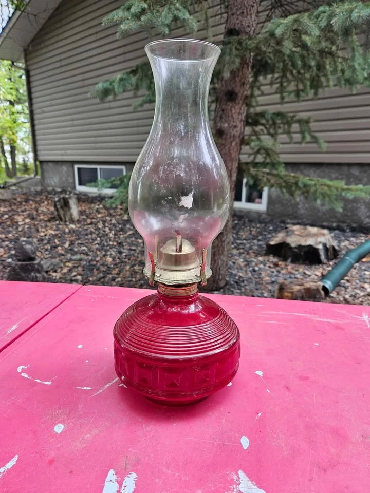 Vintage Red Glass Oil Lamp