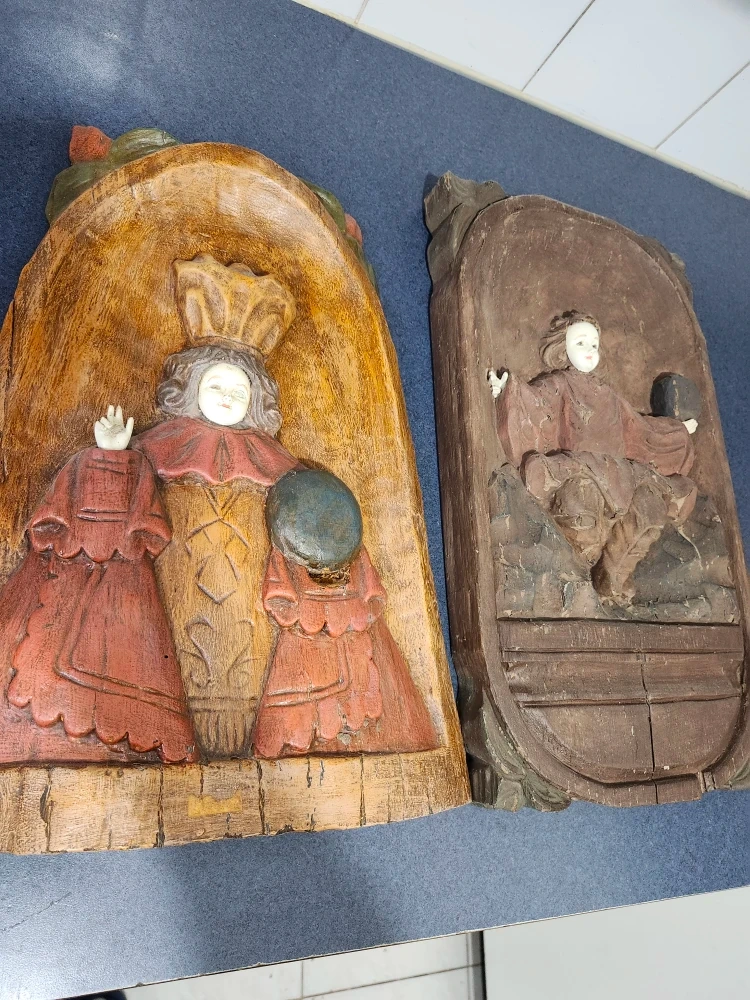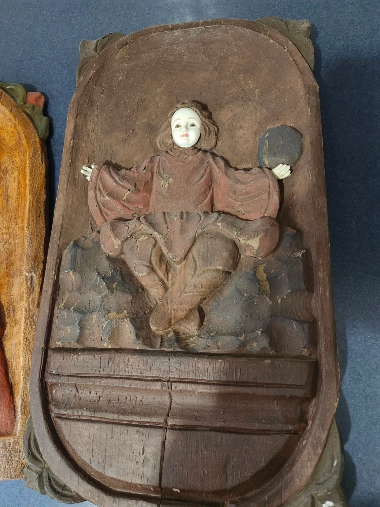 26Vintage religious carved, solid wood frame. Selling $30 each or best offer for both, clean and in good shape.