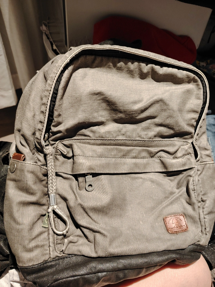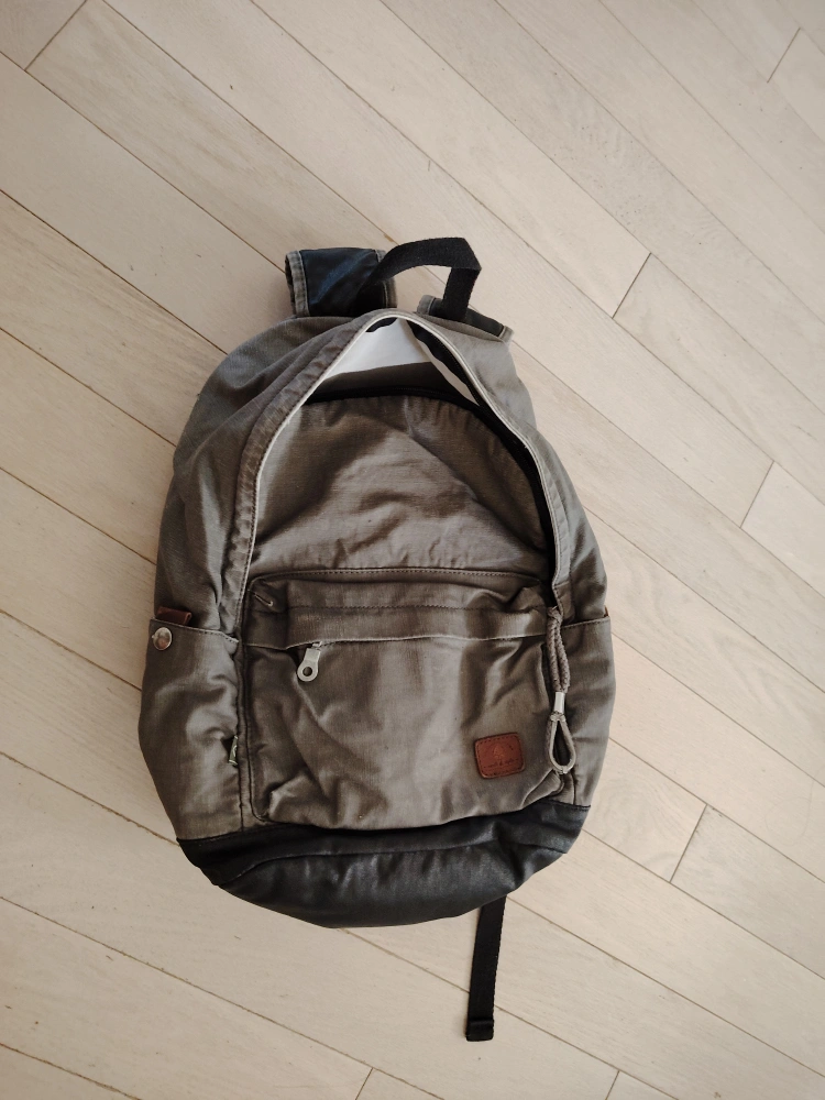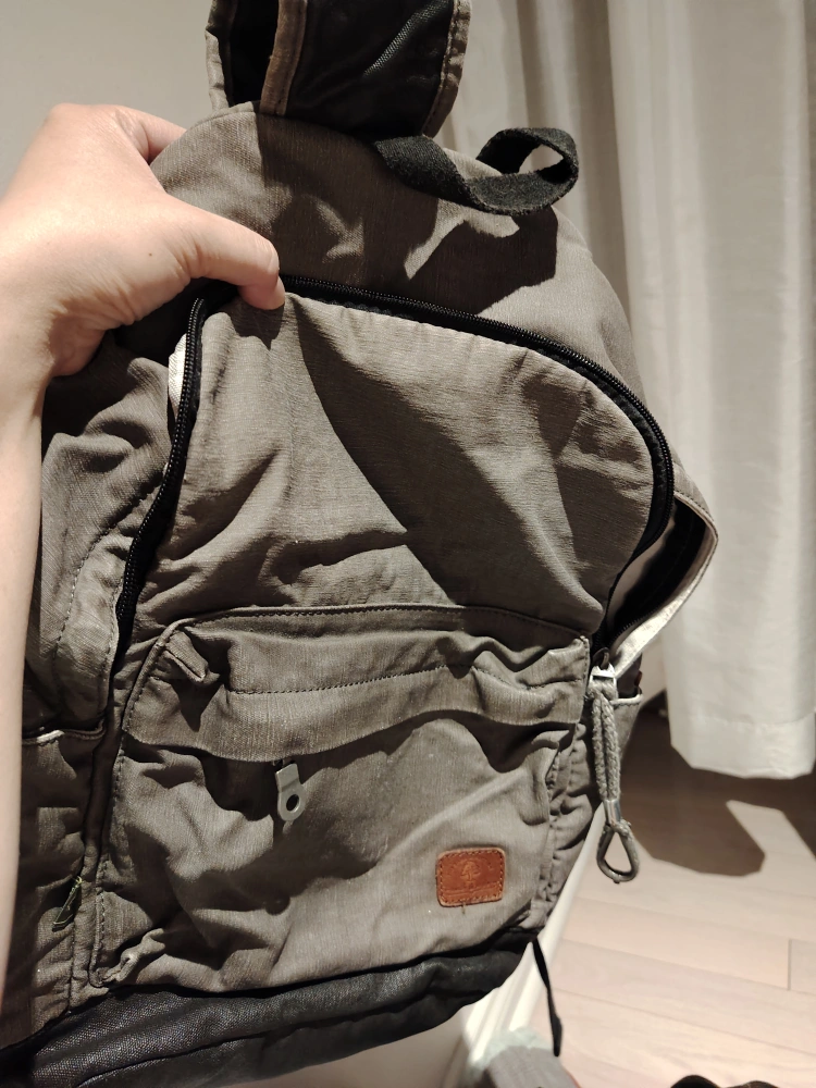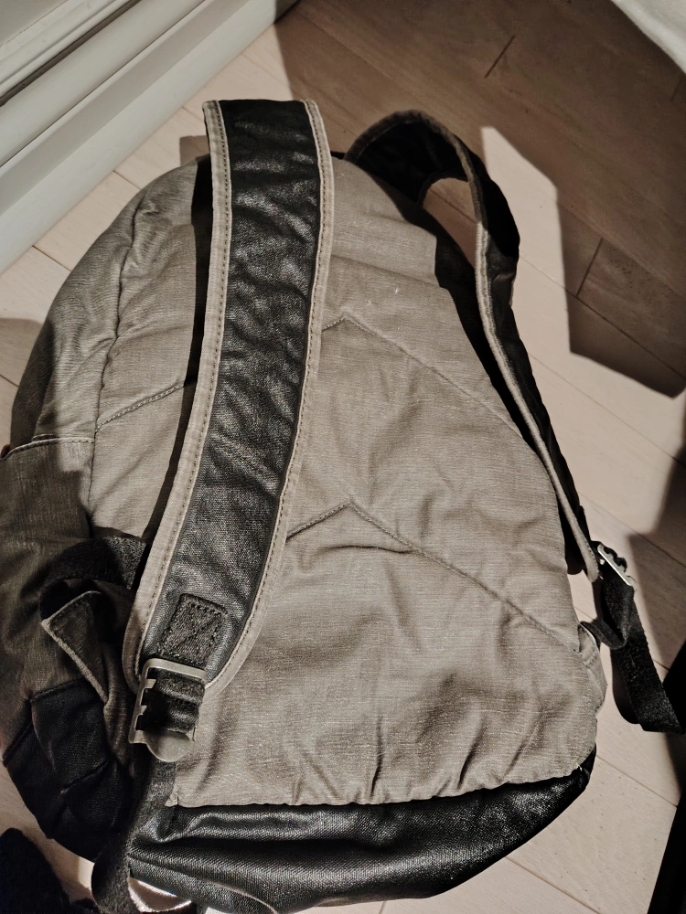 905Grey canvas backpack. Features multiple pockets and adjustable straps. Good for everyday use or travel.Can fit 17"laptop. Cash only no refund pick up at Erin mill town center mississauga. 🥕