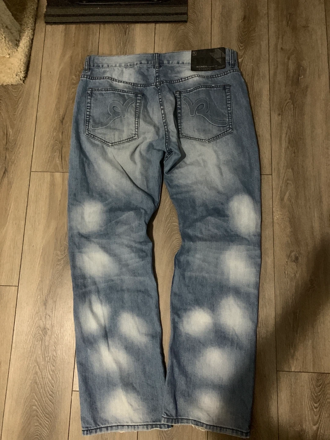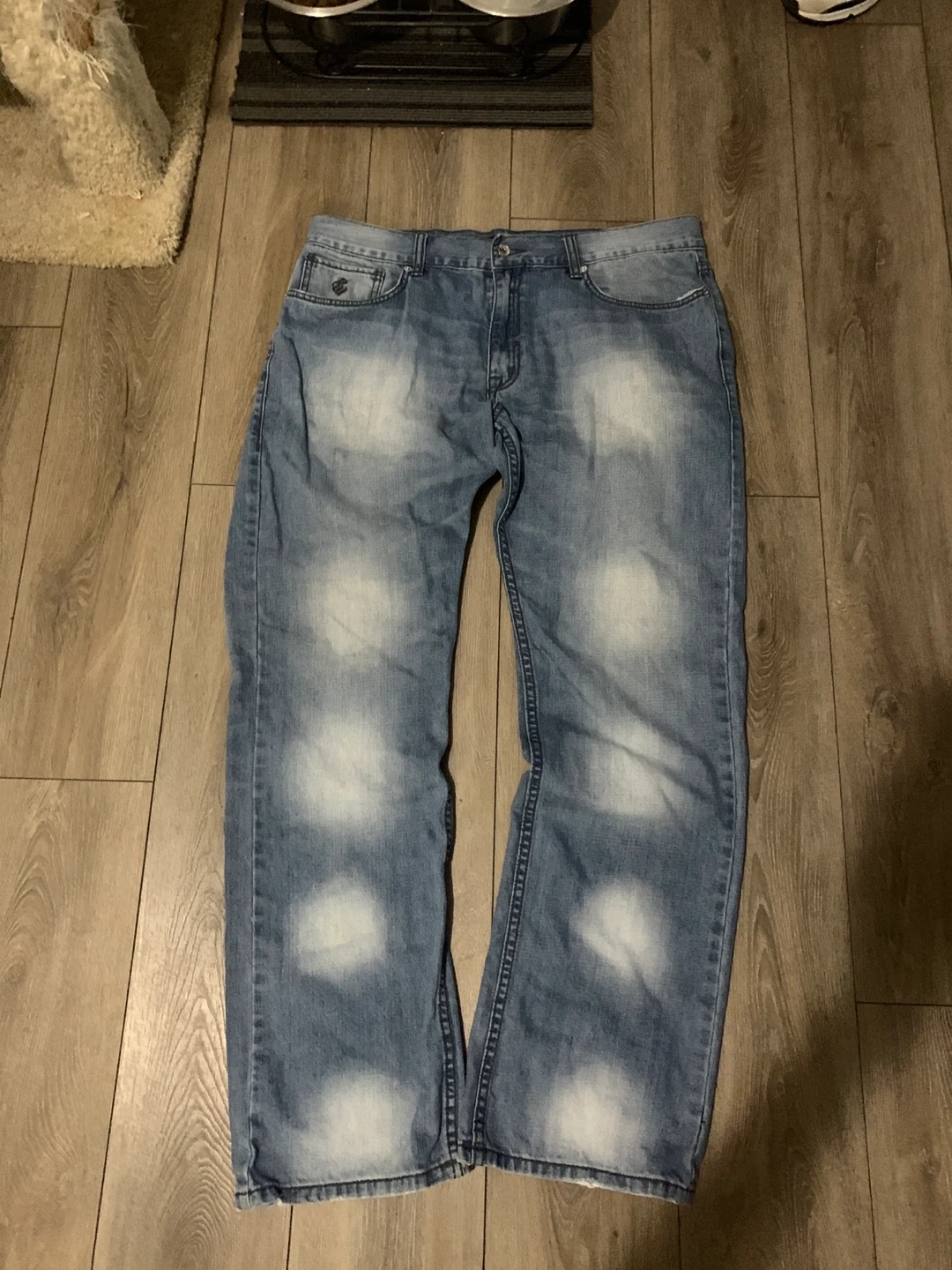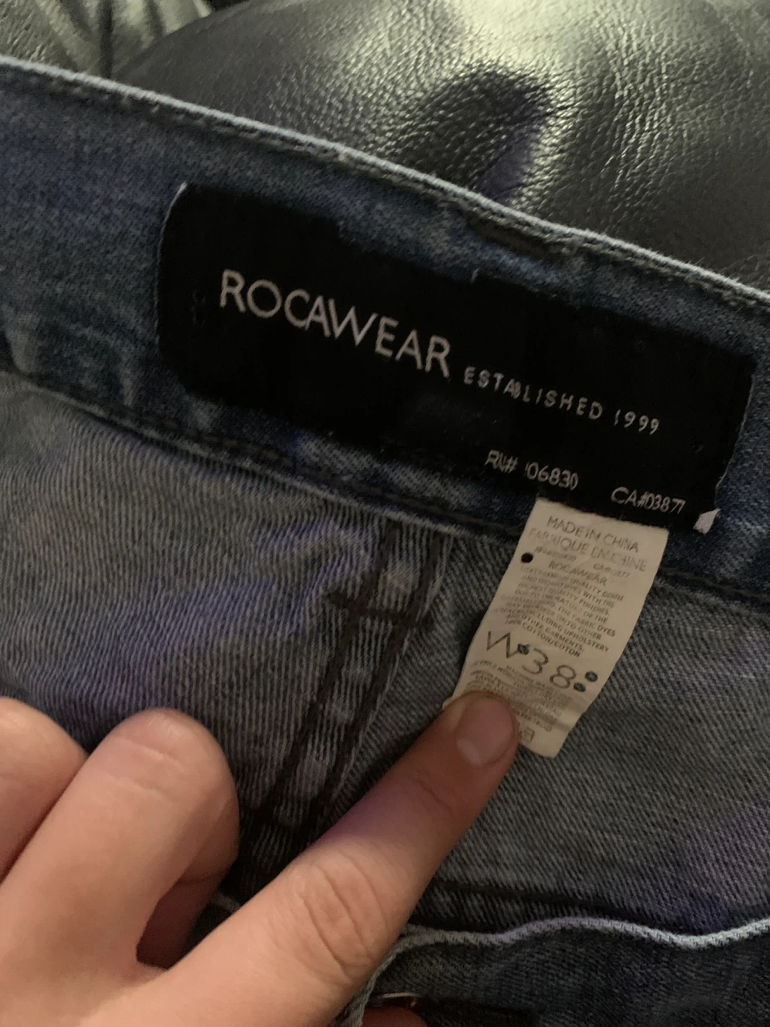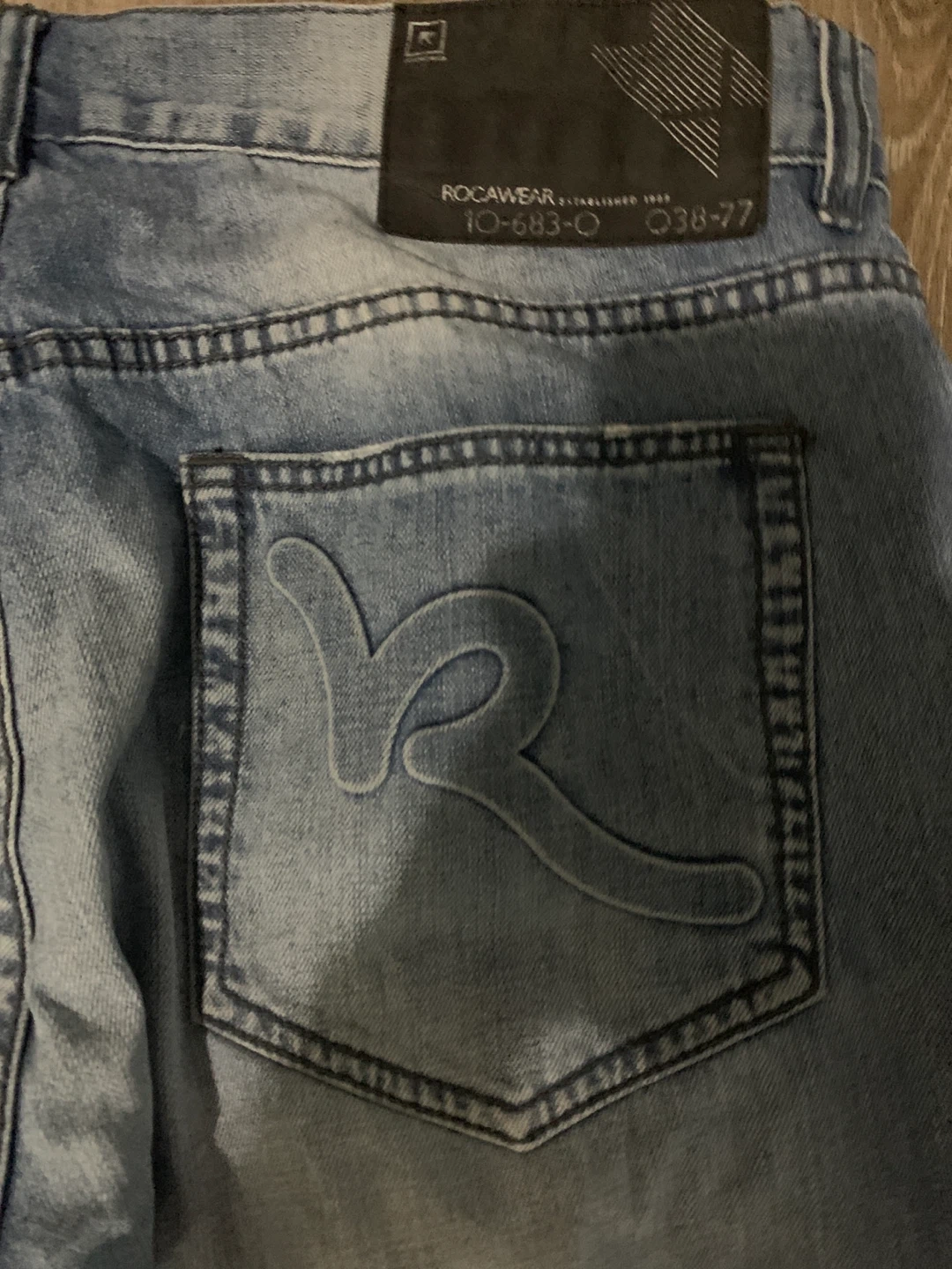 23Selling a pair of Rocawear jeans! They're in good condition and have a light wash. The Rocawear logo is featured on the back pockets. Open to trades