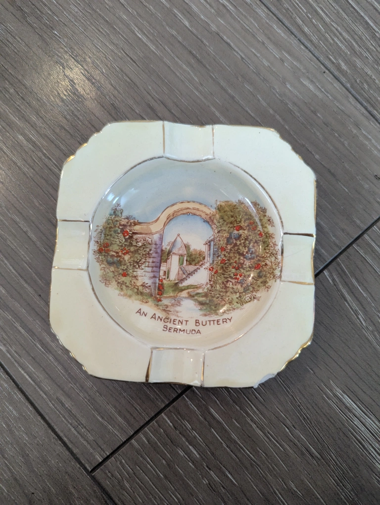 222Selling a charming Royal Winton ashtray featuring a scene of 'An Ancient Buttery Bermuda' design. It's in great condition and would make a lovely addition to any collection!