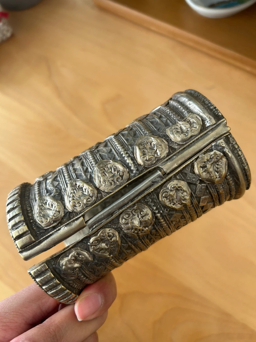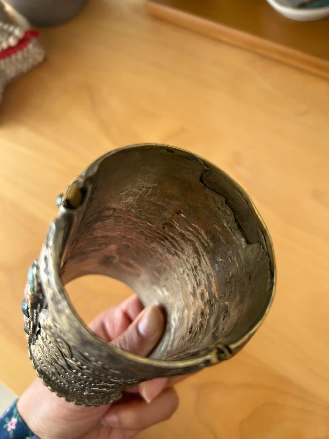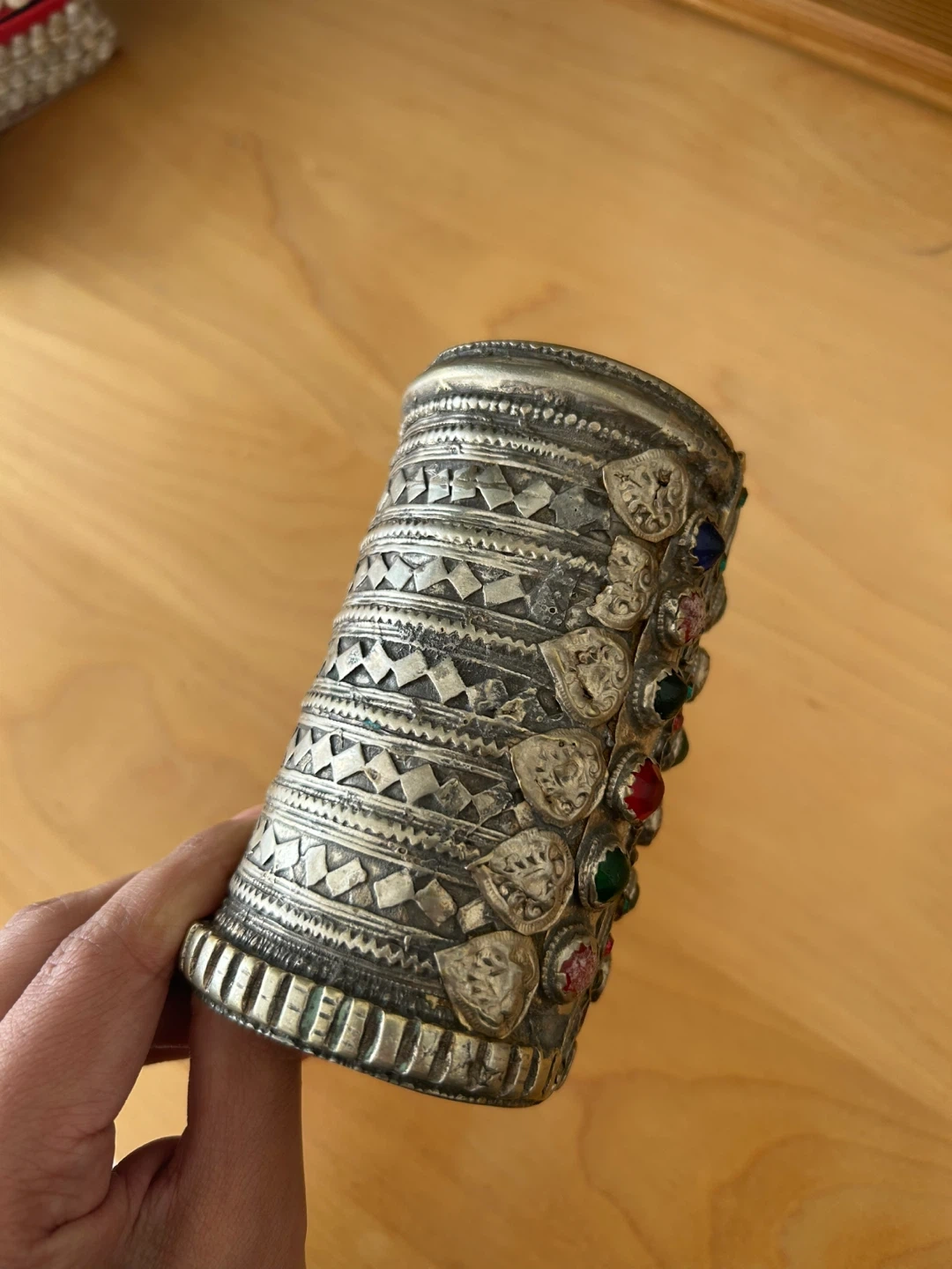 346Selling a vintage silver tone cuff bracelet. It features intricate detailing and colourful gemstones. This unique piece would add a touch of character to any outfit! More than 120 years old Still in good condition and elegant look