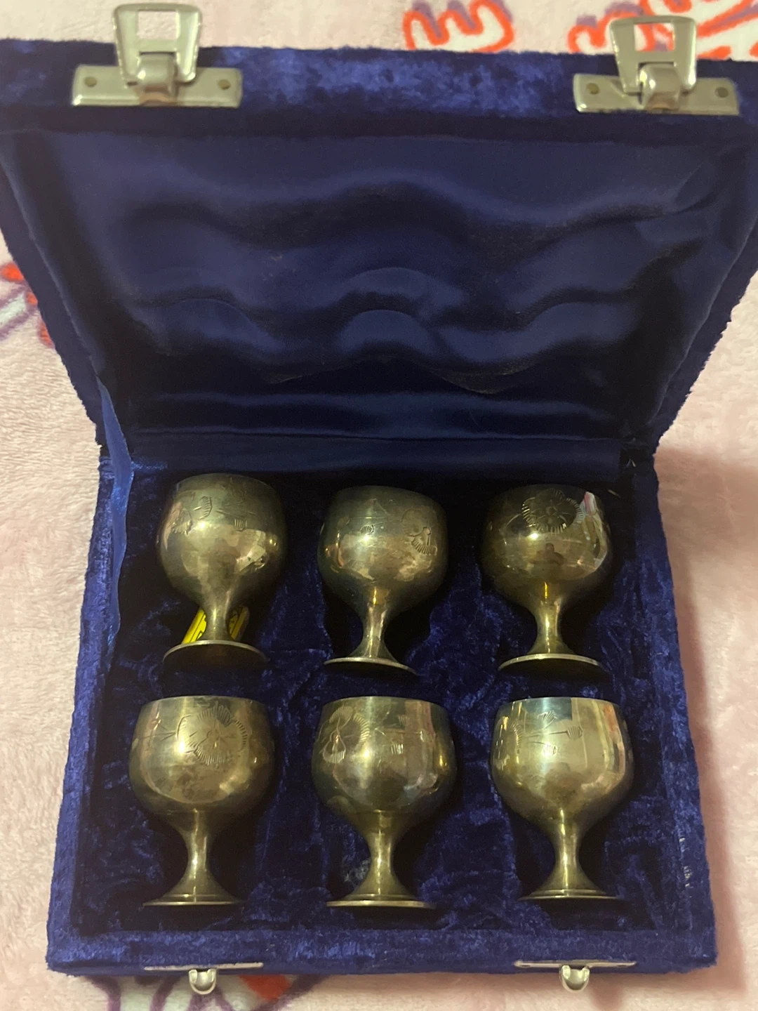 323Selling a set of six vintage silver wine goblets! They come in a beautiful blue velvet box, perfect for gifting or adding a touch of elegance to your home bar