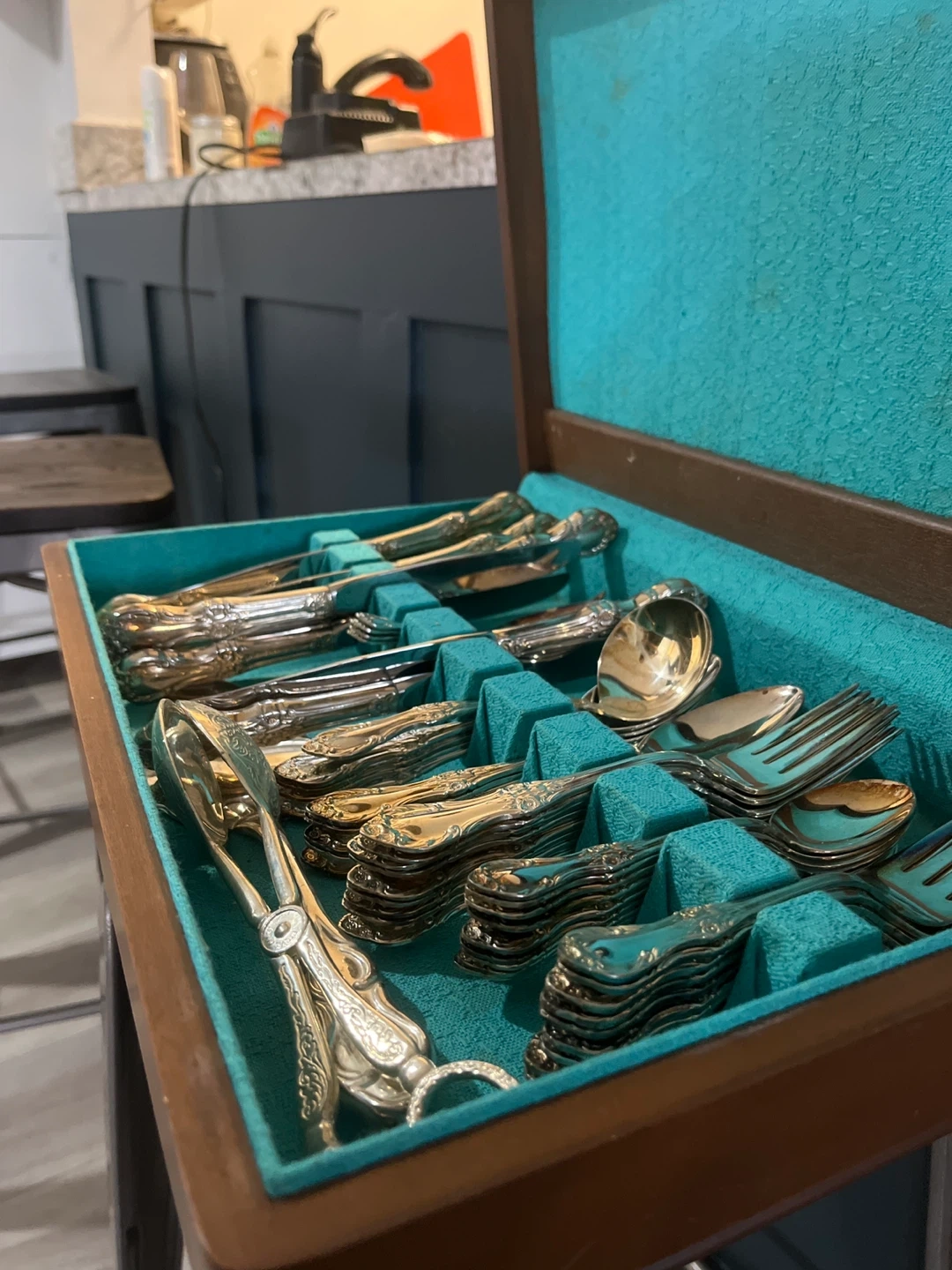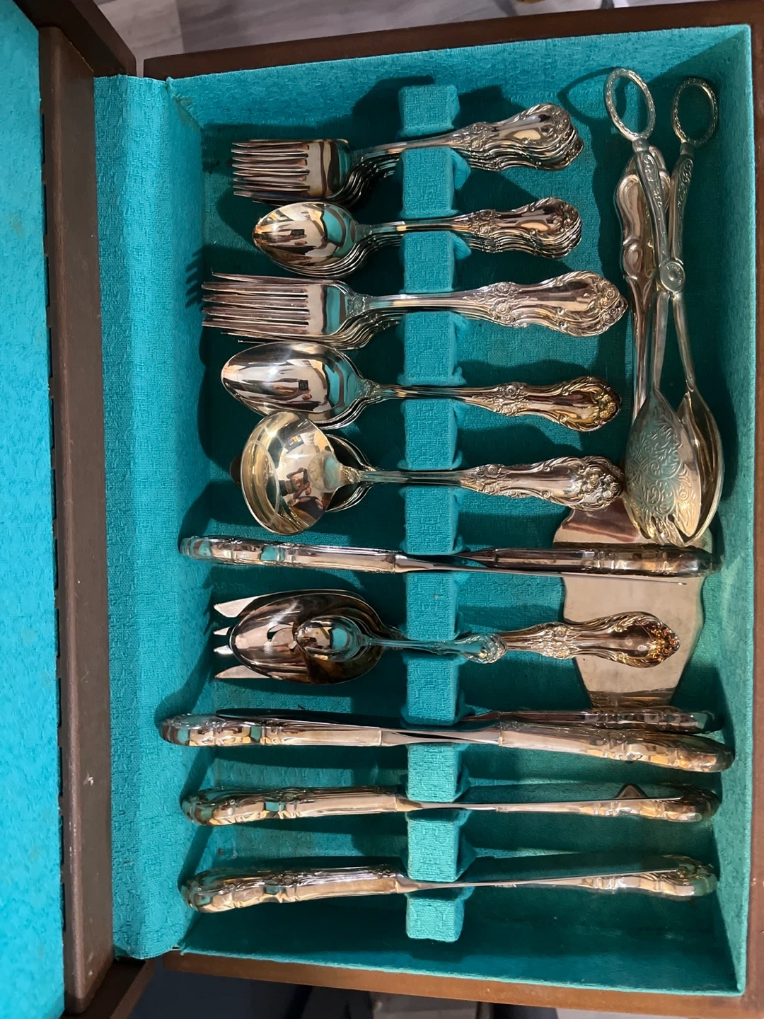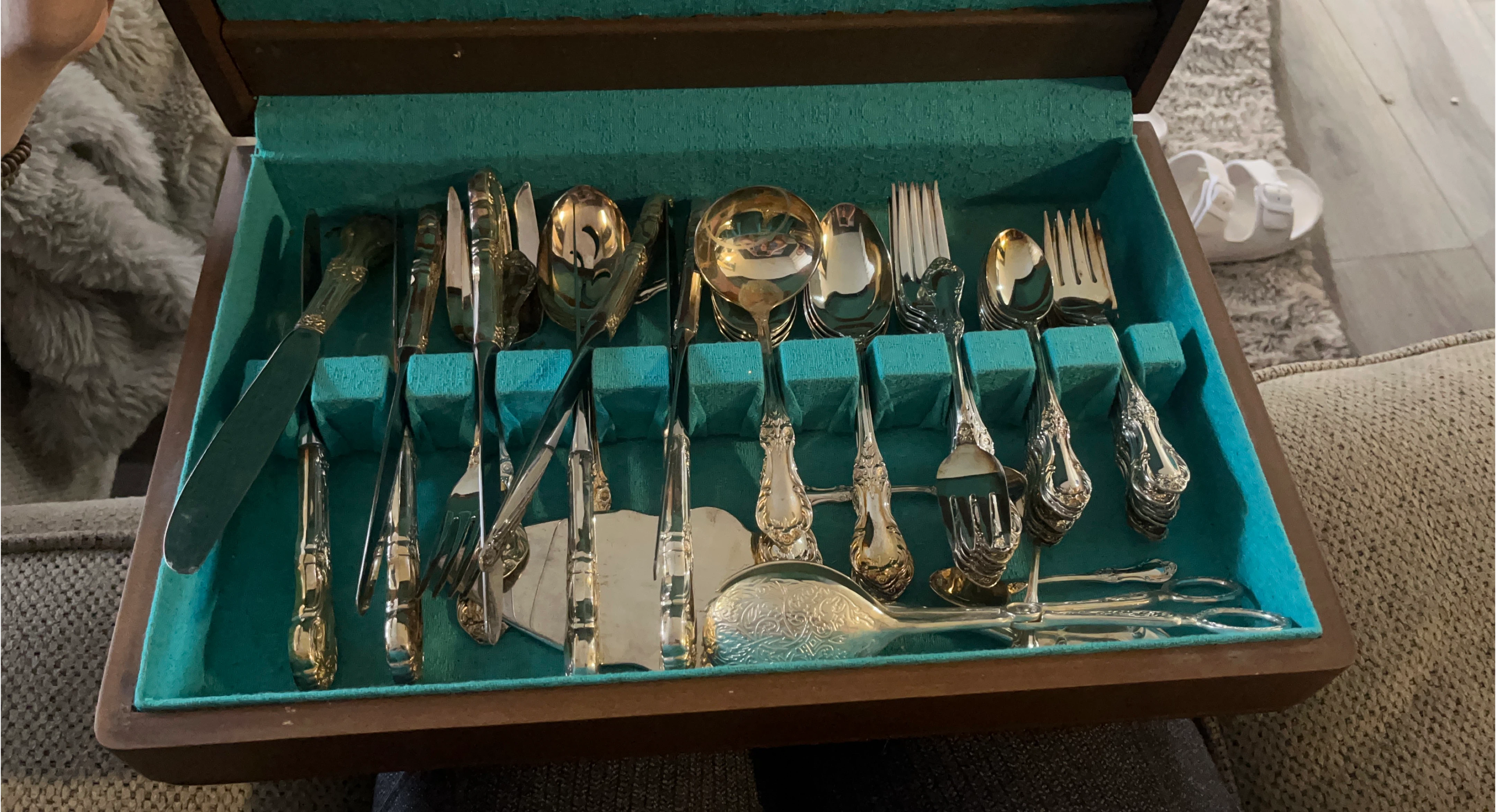 10Selling a vintage silverware set, complete with its original case! The set features ornate detailing and a classic design. It includes knives, forks, spoons, and serving utensils. Perfect for adding a touch of elegance to your dining experience or for collectors!