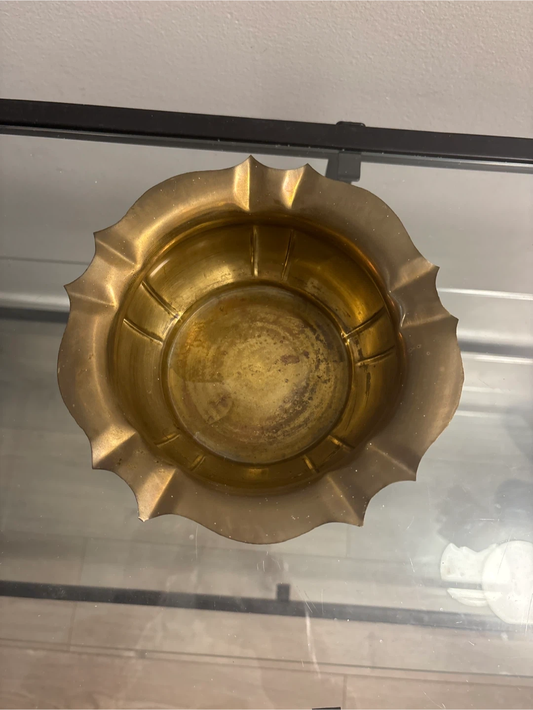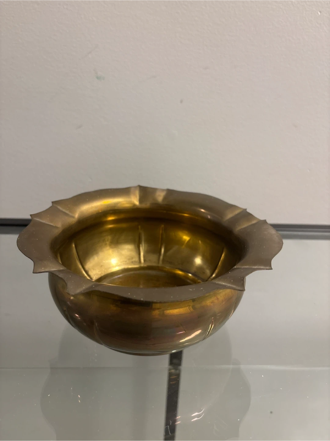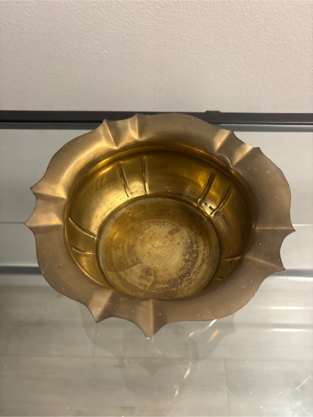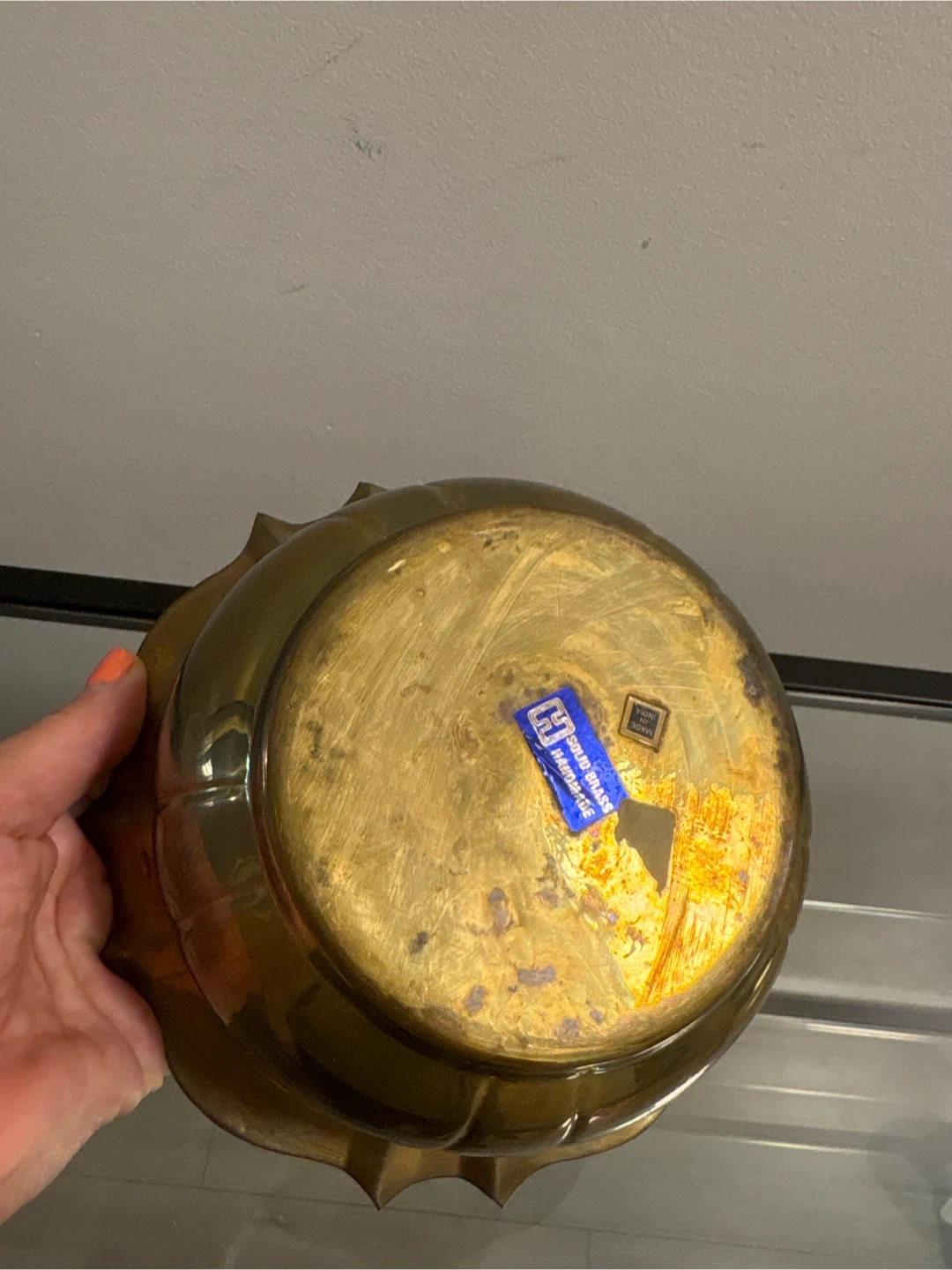 98Selling a vintage solid brass bowl. It has some signs of use, but it's in good condition overall. It's a beautiful piece that would look great in any home