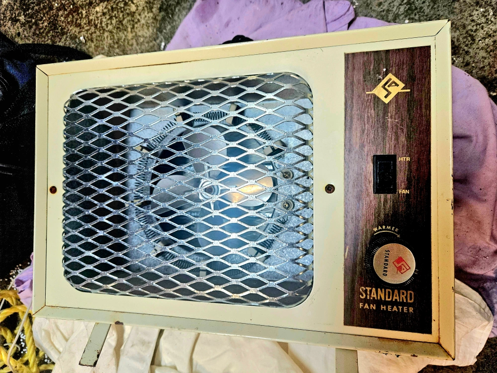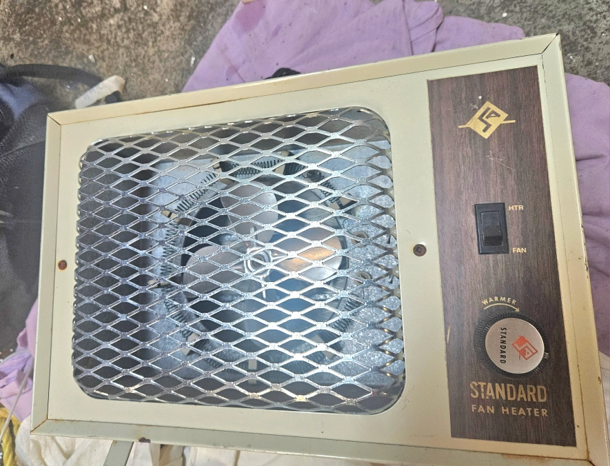 Selling a vintage Standard Fan Heater. It has a retro look with a metal grill and a control panel with a switch for HTR/FAN and a warmer dial. It shows some signs of use but would be a great addition to a vintage collection or for someone looking for a unique space heater