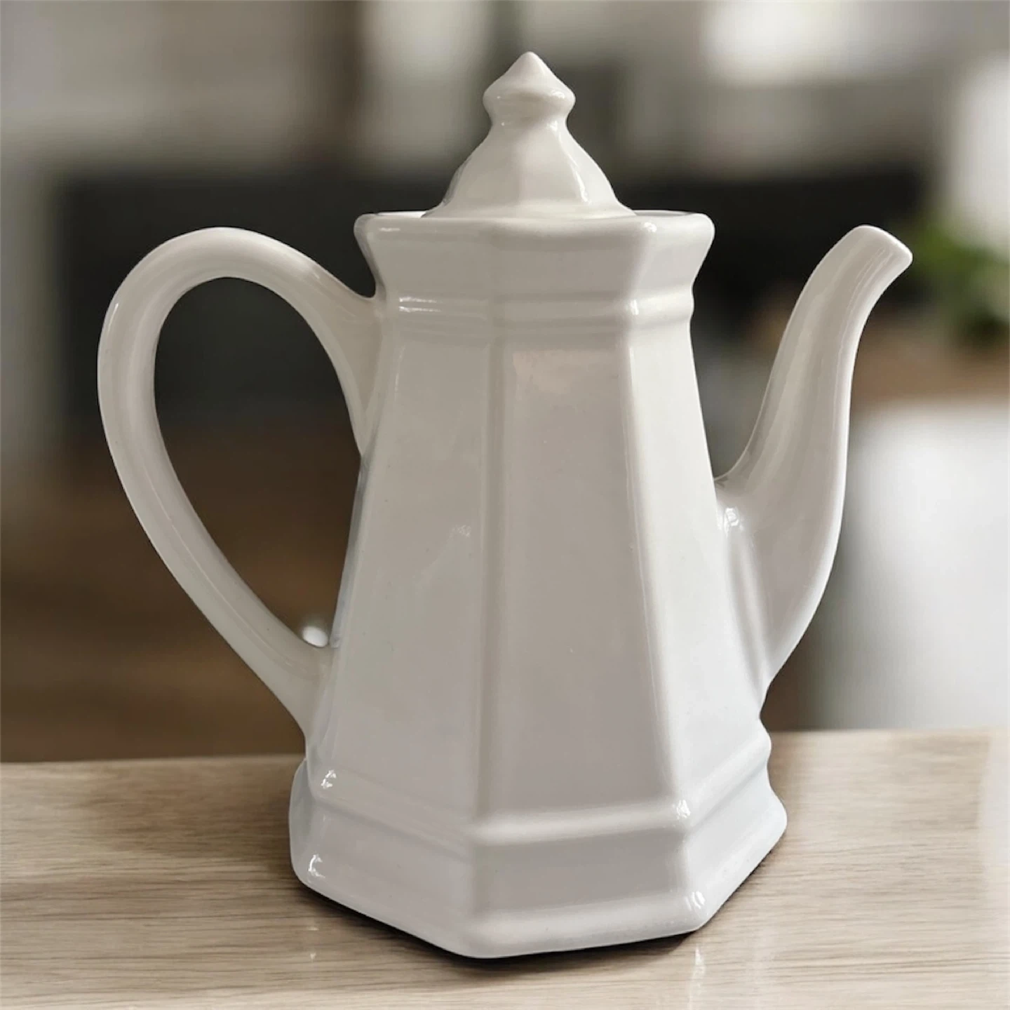 15Stoneware tea pot, a charming addition to any tea or coffee lover’ collection This Vintage piece is Pfalzgraft “Heritage White “ pattern crafted in 1963 Measurements: 8.75” in height with lid 8.1/2” long, from handle to spout 5.5/8” base