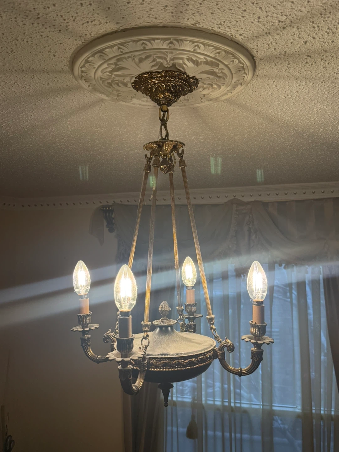 66Selling a vintage-style chandelier! It has a classic design with ornate details. It would be a great addition to any dining room or living room. Please feel free to ask any questions!