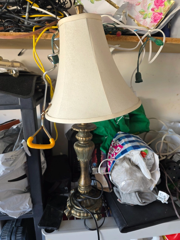 65Selling a table lamp with a vintage-style base and a cream-coloured shade. It's in good condition and would look great in any room!