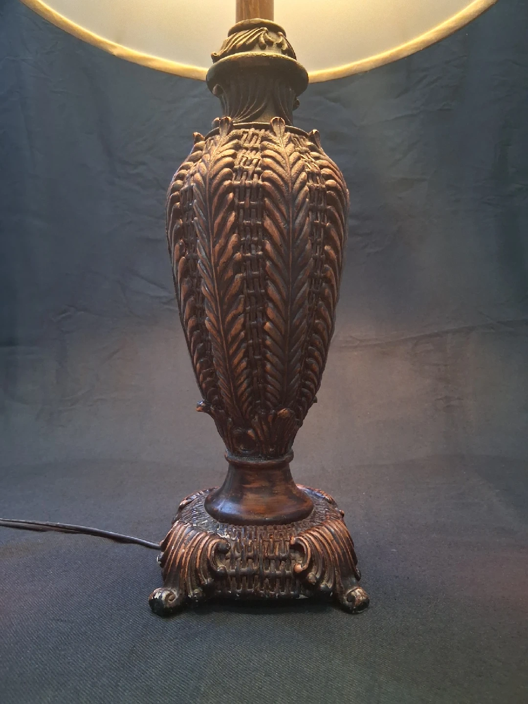 60Selling a vintage-style table lamp. It has a beautiful, ornate base and a classic lampshade. It would look great in any room!