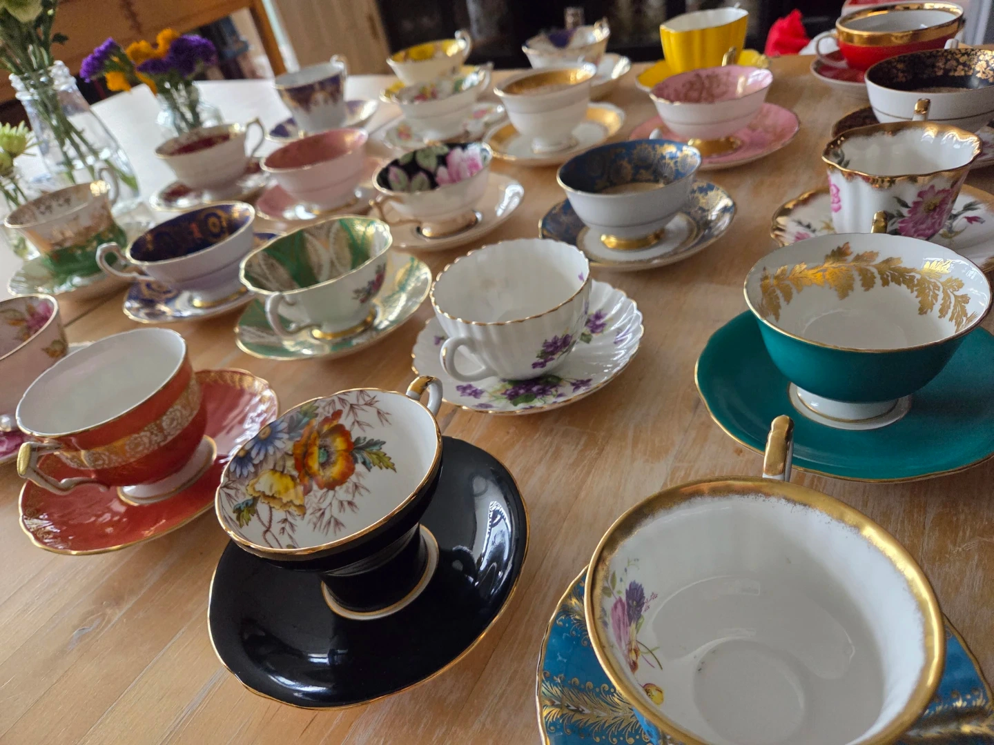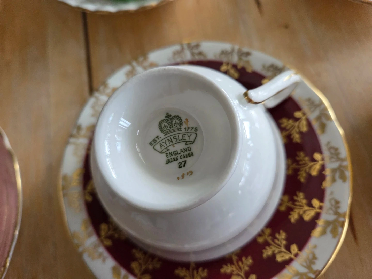 73Selling a collection of vintage tea cups and saucers. Brands include Aynsley, Royal Albert (Empress Series "Isabella"), and Paragon. Beautiful designs and in great condition! Selling all 24 set together (not individual)